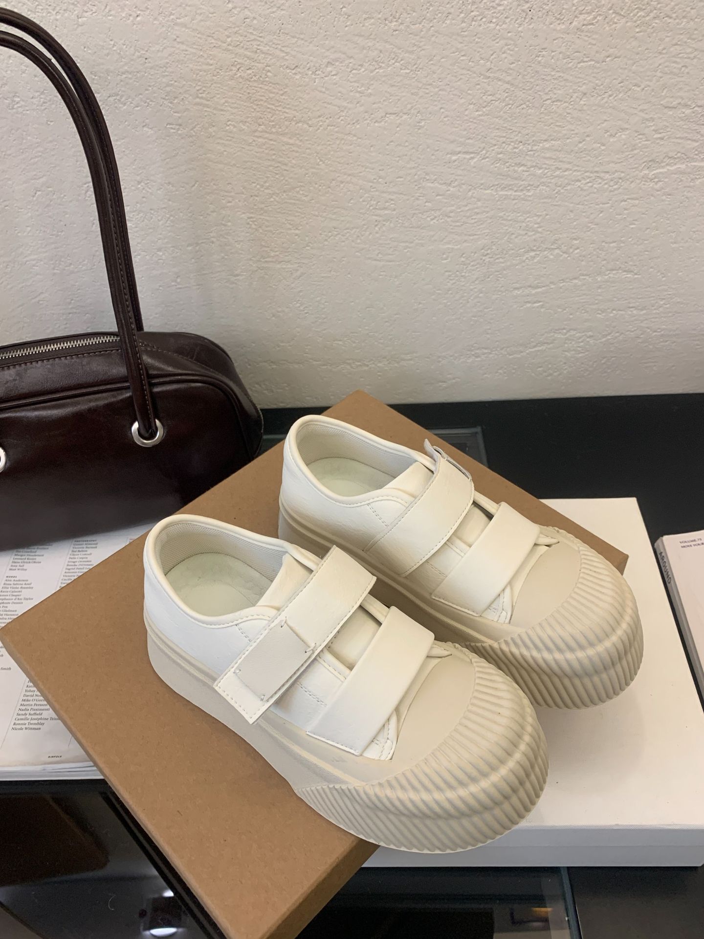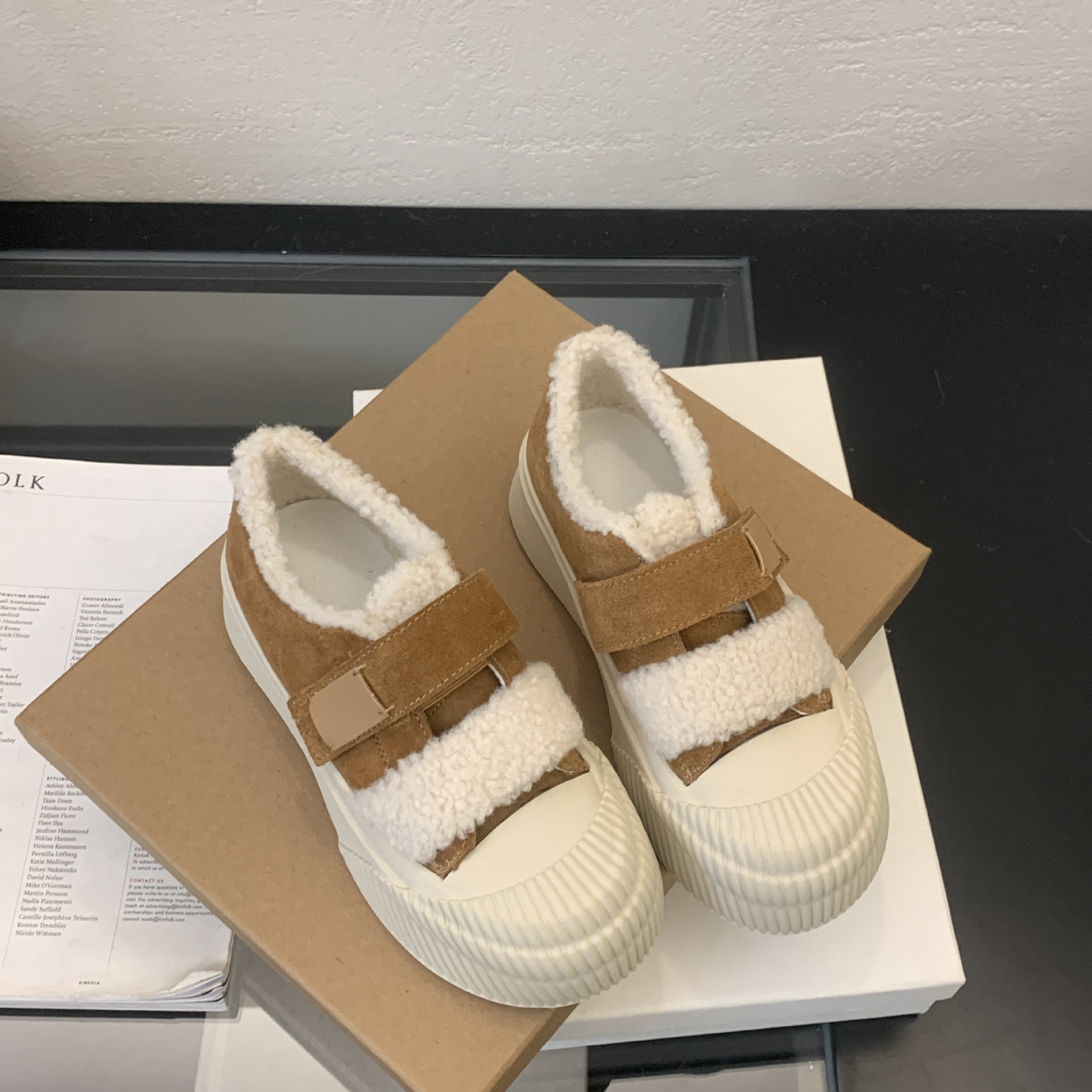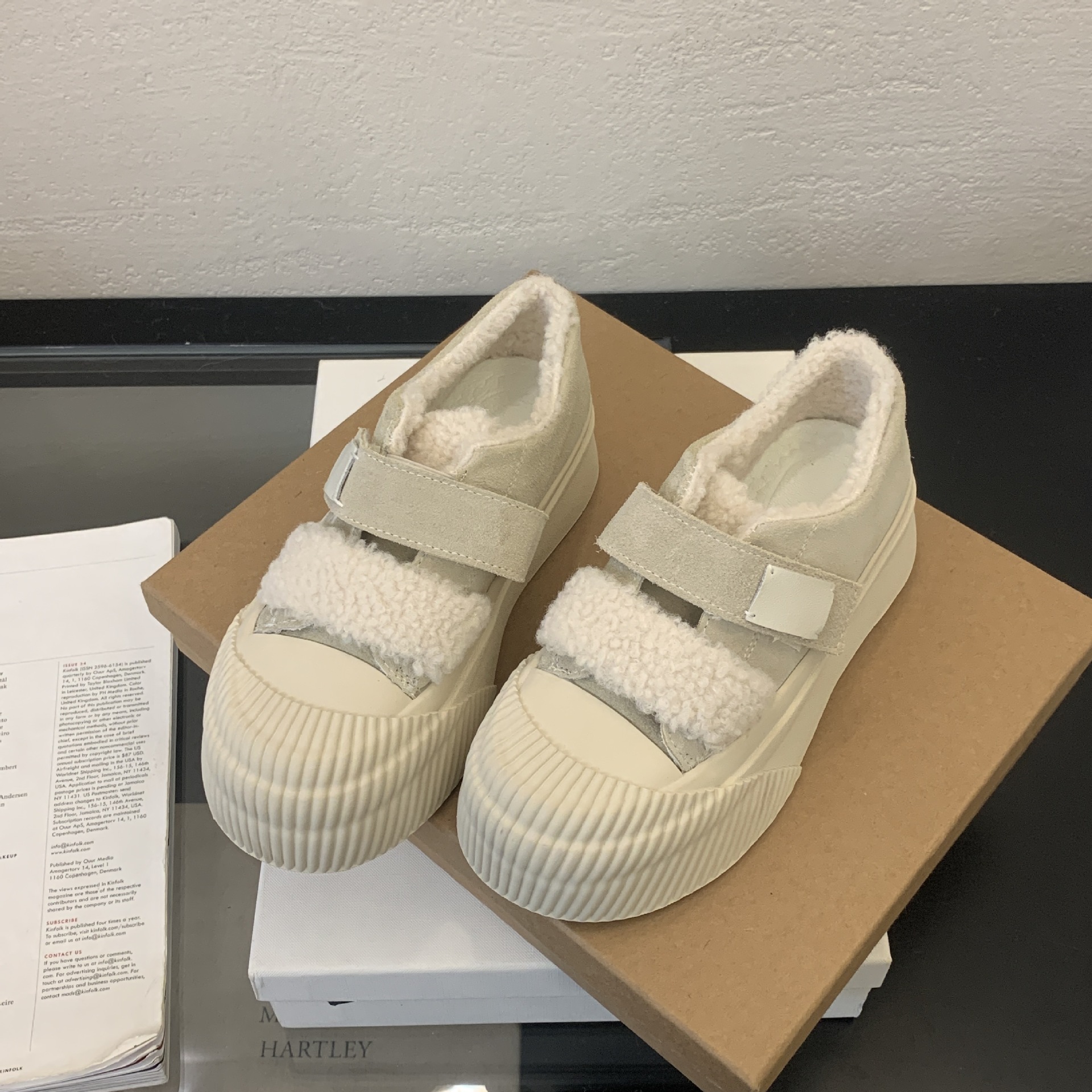 Chaussures ShoeGlobe Grape Mom Automne Hiver Nouvelles Chaussures en cuir véritable à semelle épaisse et doublure en velours épais, chaudes et décontractées, couleur blanc biscuit, pour femmes