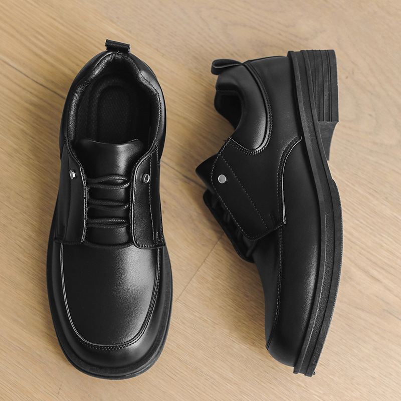 Derby ShoeVault à bout carré pour homme, semelle épaisse rehaussante, style britannique noir, idéal pour le travail, les loisirs, les jeunes, le style rétro ou les déplacements quotidiens.