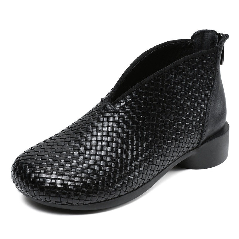 Chaussures montantes ShoeVault Vintage Original New Flat And Bare Short Woven Handmade en cuir véritable pour femmes, fermeture éclair arrière, bottines simples