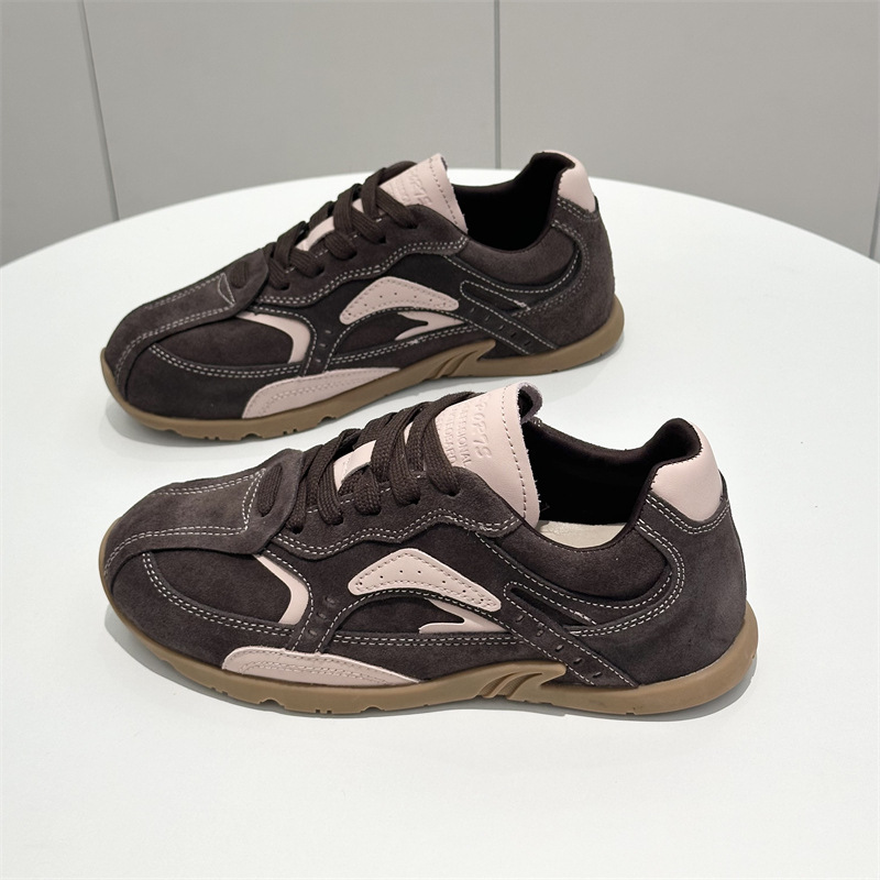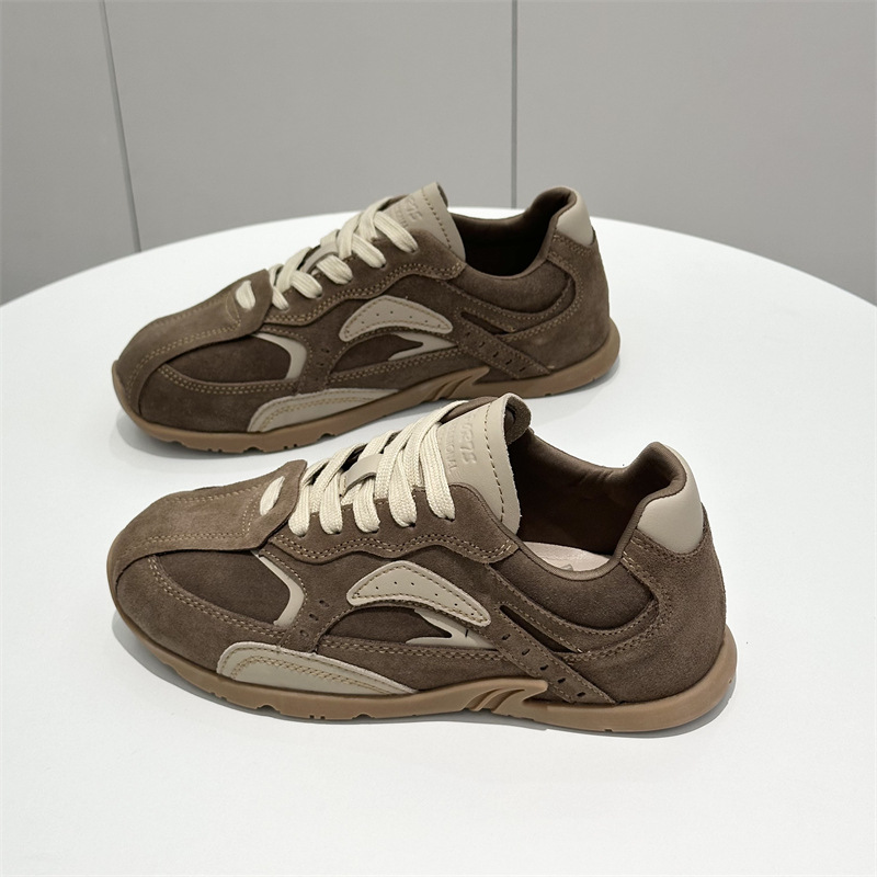 Shougu Forrest Gump Femmes 2024 Automne Nouveau Cuir Polyvalent Respirant Formation Plate Simple Chaussures À La Mode