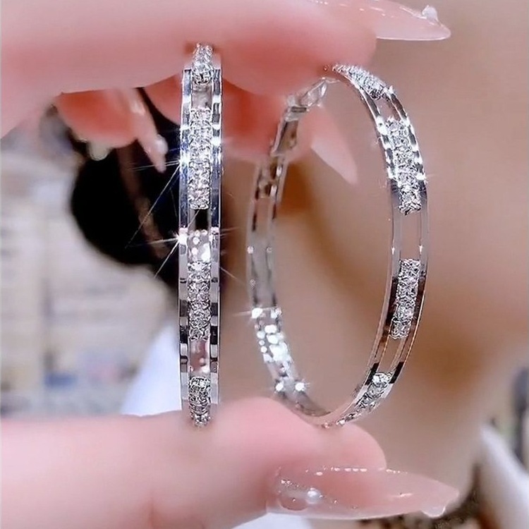 Silver Needle Exaggerated Water Diamond Large Earrings Female Personality Temperament Internet Celebrity Niche Circle Earrings Earrings Pendants