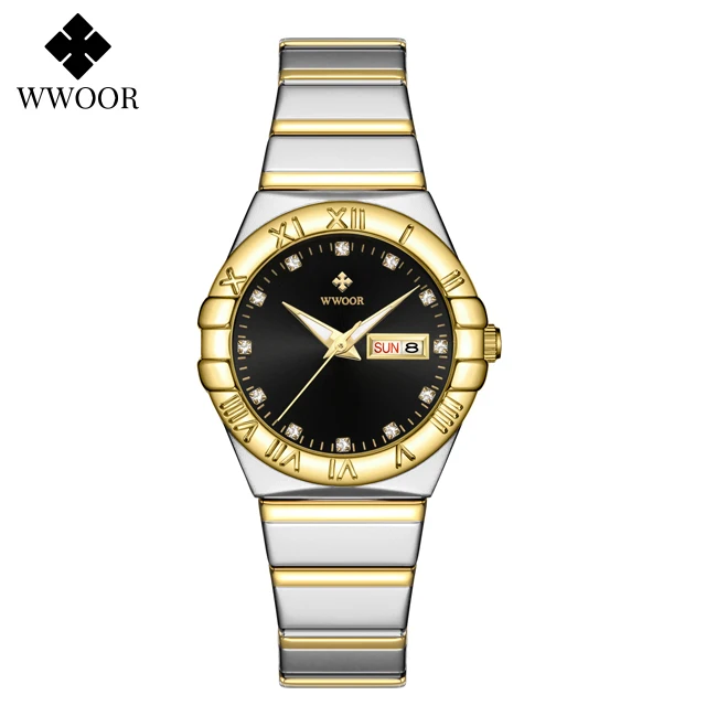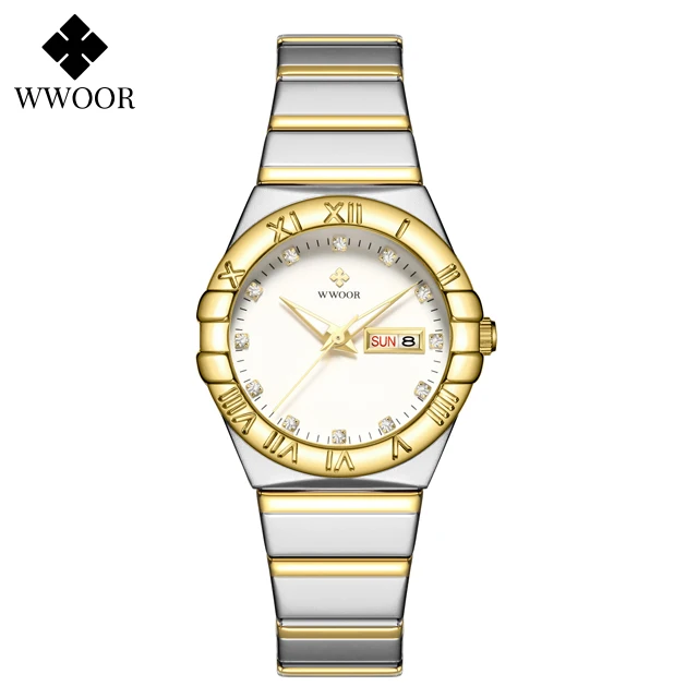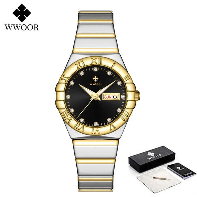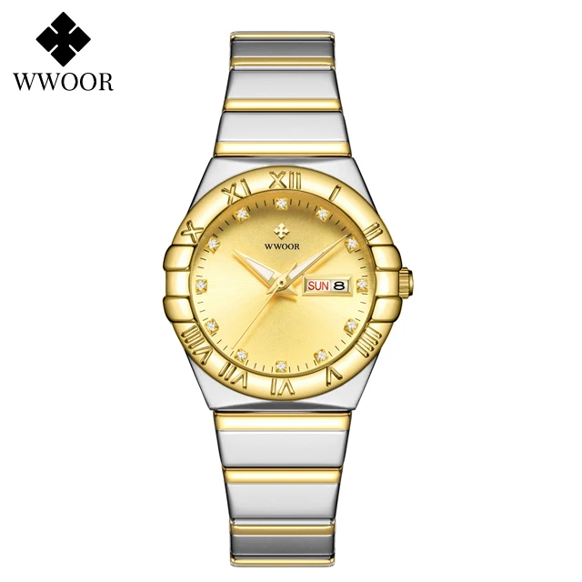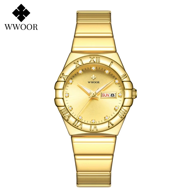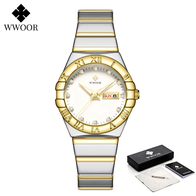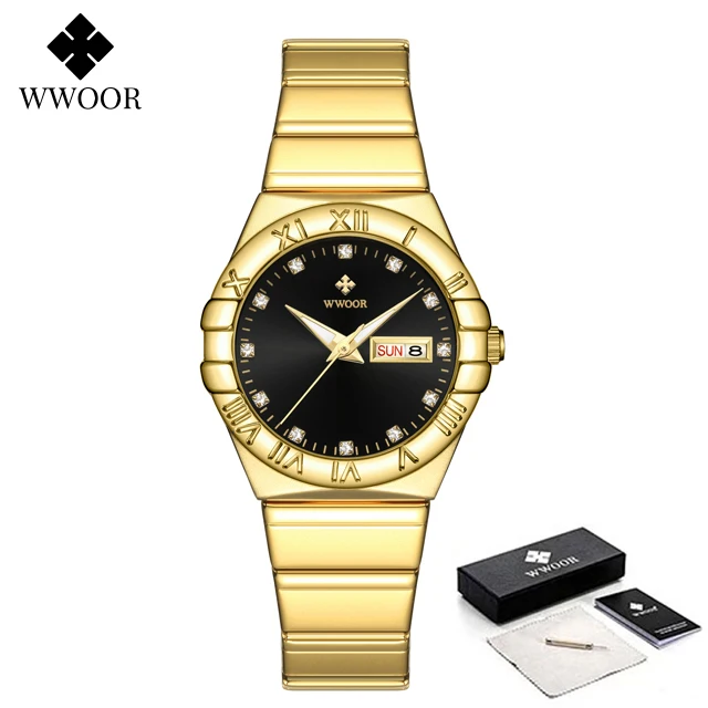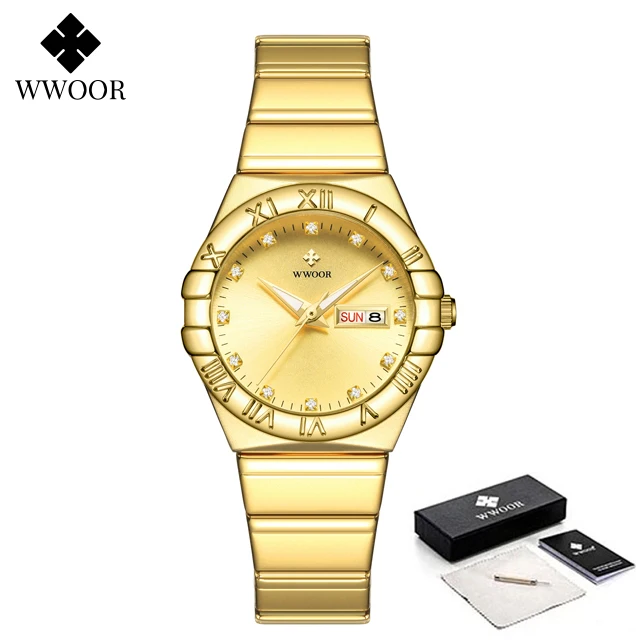 Case Shape:RoundDial Window Material Type:HardlexBoxes & Cases Material:PaperDial Diameter:30mmCase Thickness:10mmBand Length:18.5cmBand Width:18.5mmBand Material Type:Stainless SteelModel Number:8885Feature:Shock Resistant,Auto Date,Complete Calendar,Water Resistant,Week DisplayStyle:LuxuryWater Resistance Depth:5BarClasp Type:Bracelet ClaspCase Material:AlloyMovement:QuartzBrand Name:WWOOROrigin:Mainland ChinaCertification:CE,RoHSbrand luxury watch women:small wrist watchWatches For Women:women golden watch