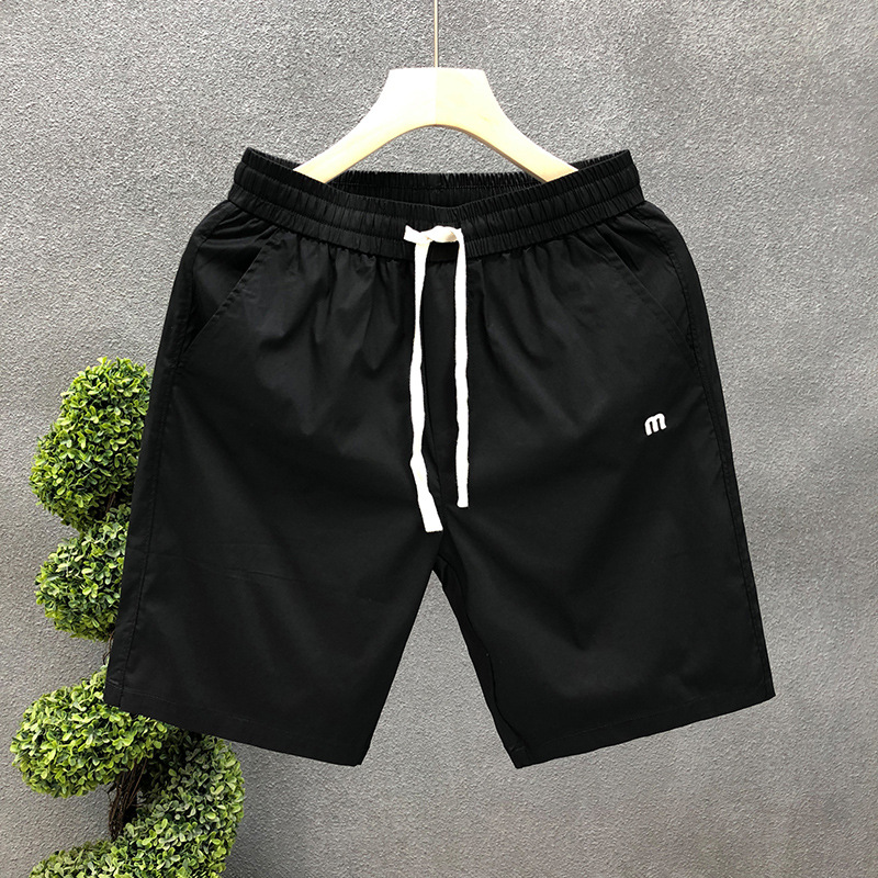 Simple embroidered white shorts for men's summer outerwear, thin beach pants for men's loose fitting home casual large shorts