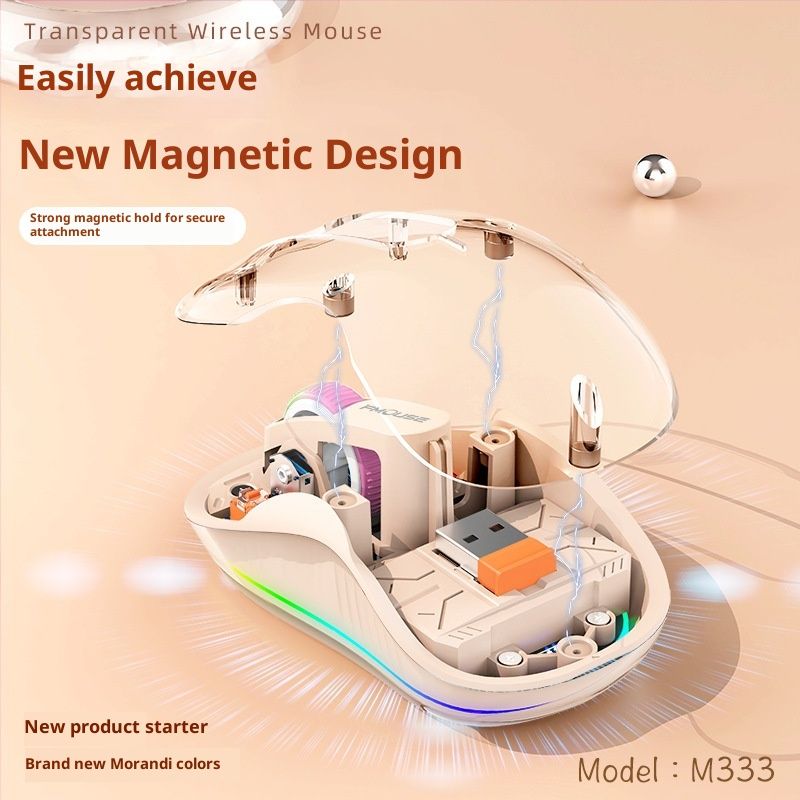 Souris sans fil Bluetooth Digitex à trois modes avec indicateur de batterie, ergonomique, silencieuse et lumineuse, idéale pour le bureau. Disponible en stock. Transparente.