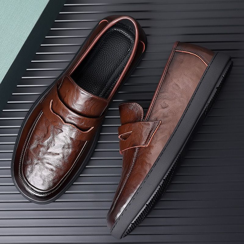Printemps véritable semelle souple visage Lefu cuir de vachette haricot papa décontracté chaussures pour hommes
