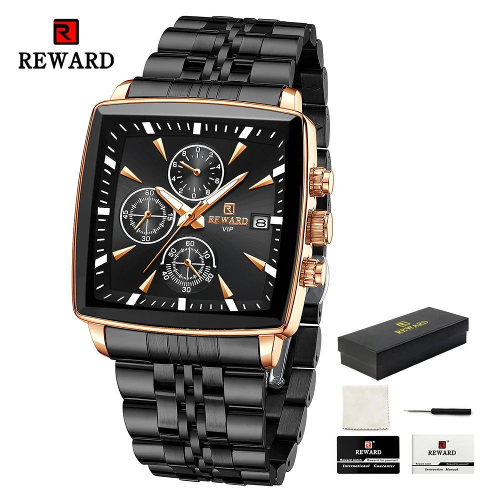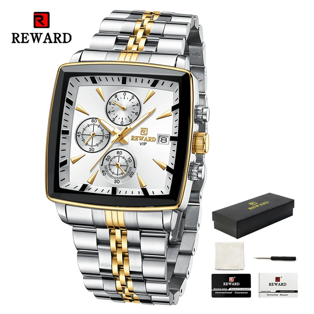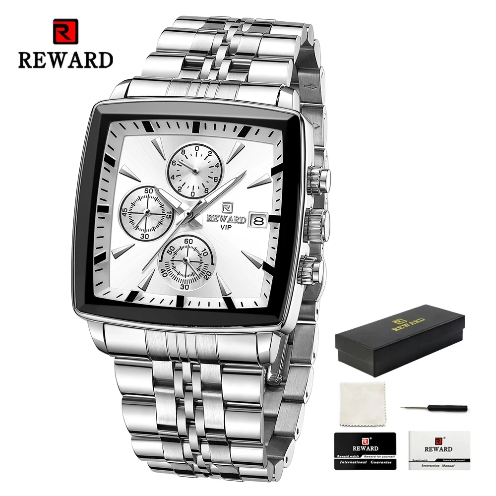 Case Thickness:10mmBand Width:47mmBand Material Type:Stainless SteelCase Shape:RectangleDial Window Material Type:HardlexBoxes & Cases Material:PaperModel Number:RD81100MDial Diameter:32mmFeature:STOP WATCH,Back Light,Luminous,Auto Date,Chronograph,Water Resistant,luminous handsWater Resistance Depth:3BarClasp Type:Bracelet ClaspBand Length:24cmCase Material:AlloyMovement:QuartzStyle:SPORTBrand Name:REWARDOrigin:Mainland ChinaCertification:CE,FCC,RoHS,WEEEItem Type:Quartz Wristwatches