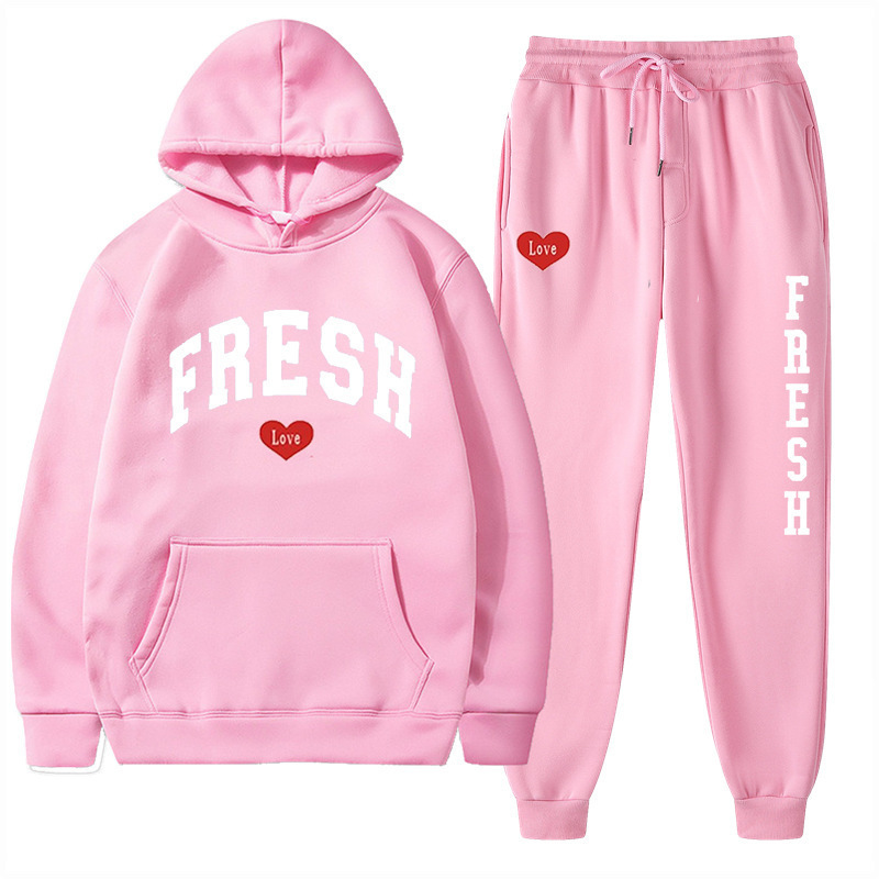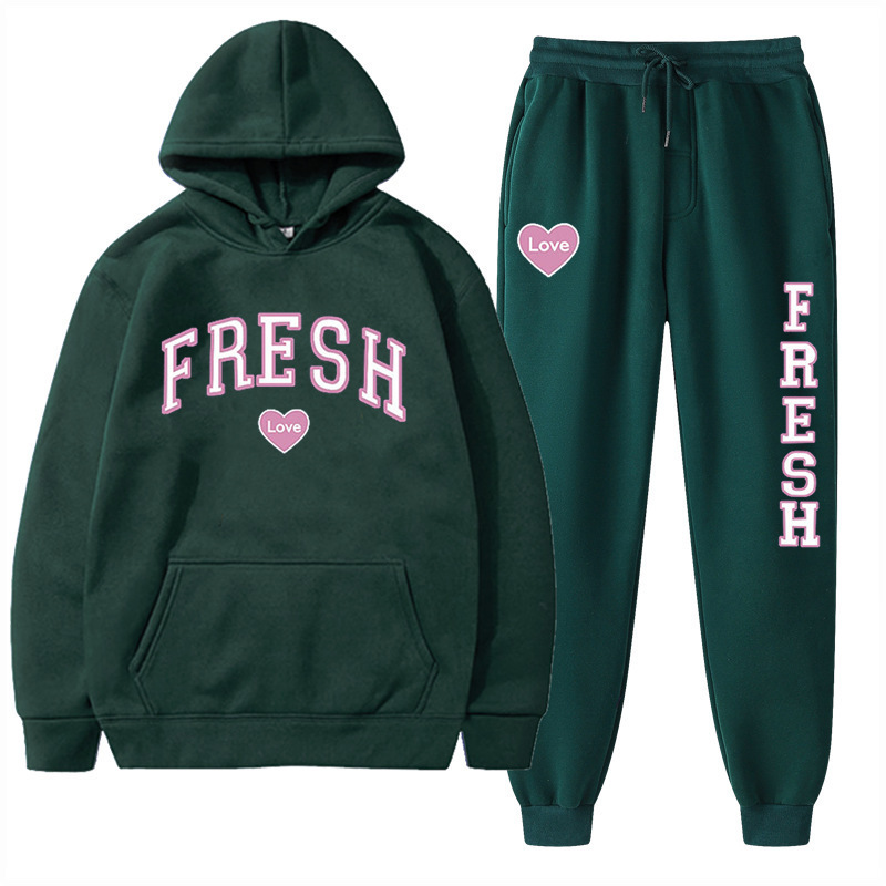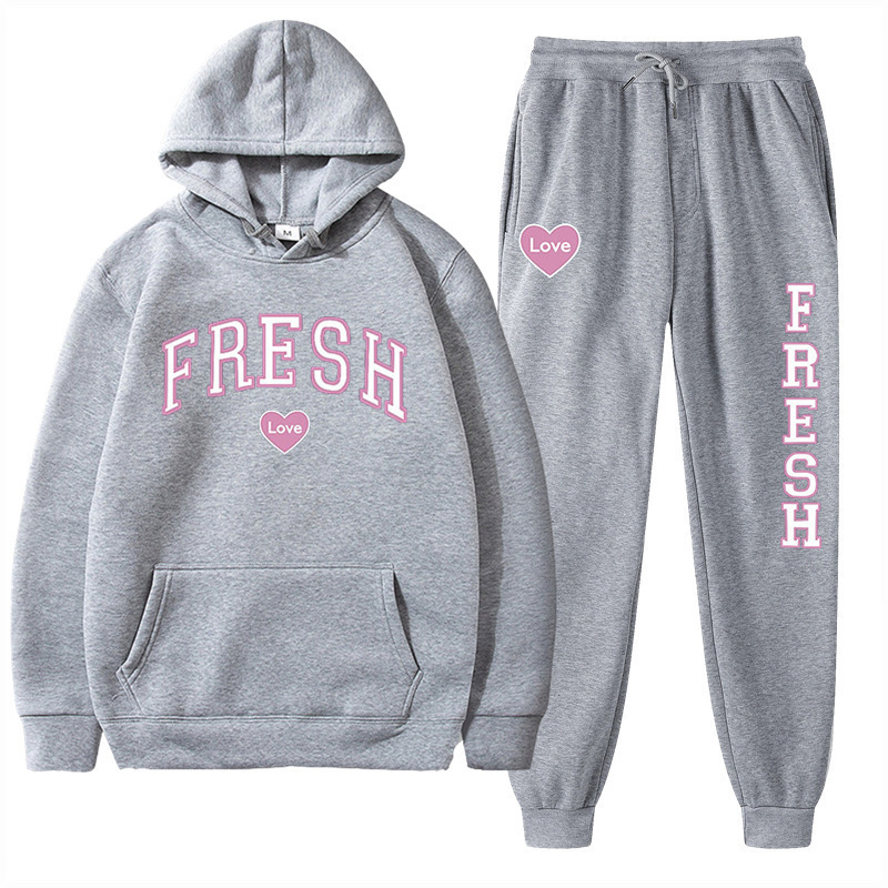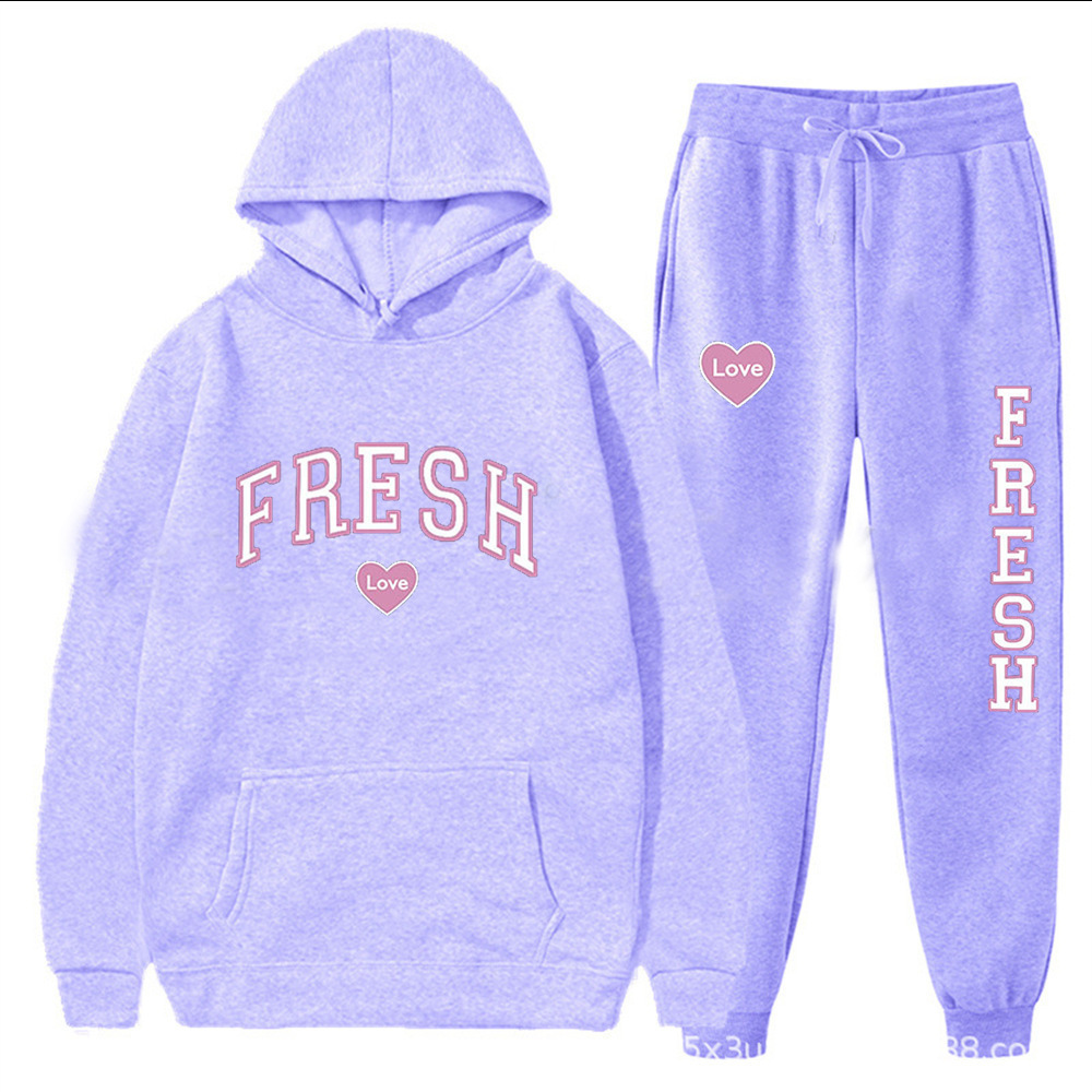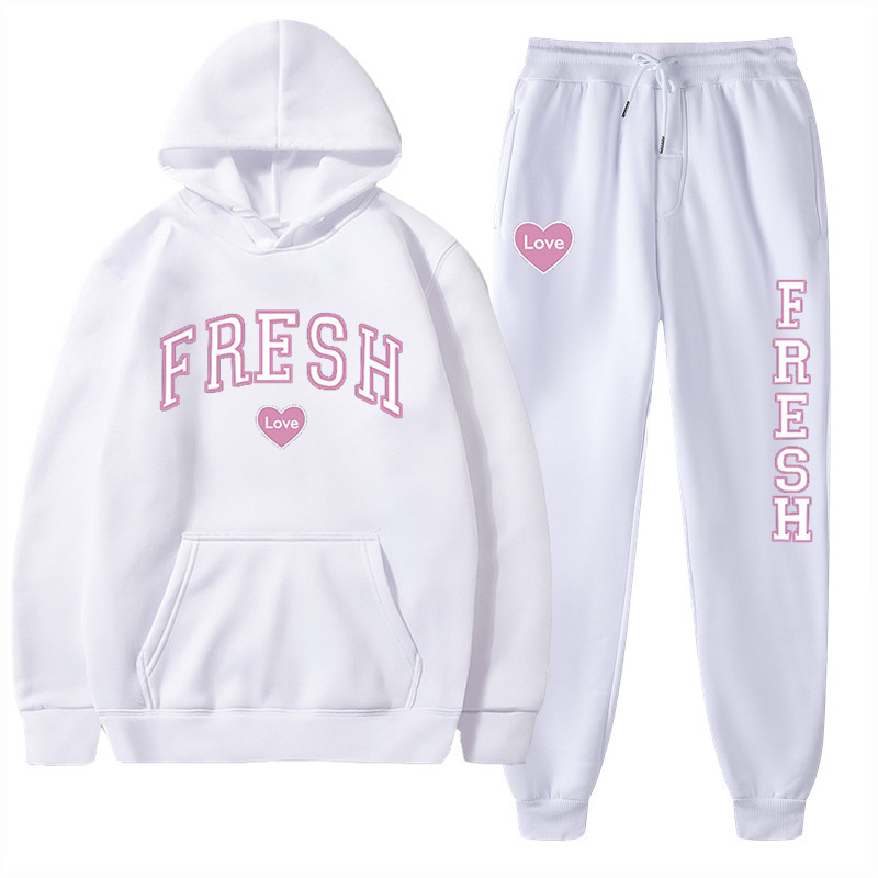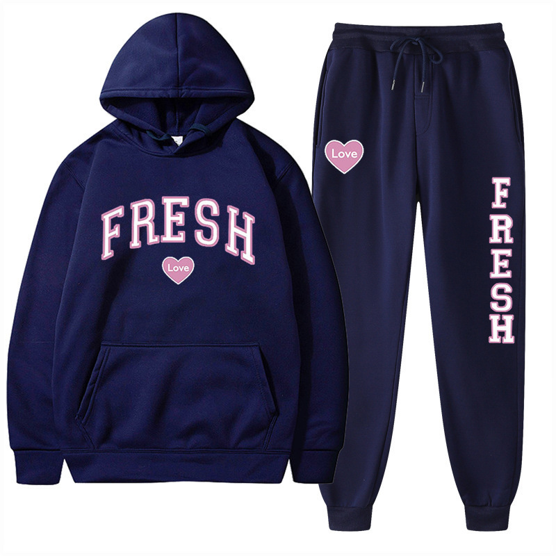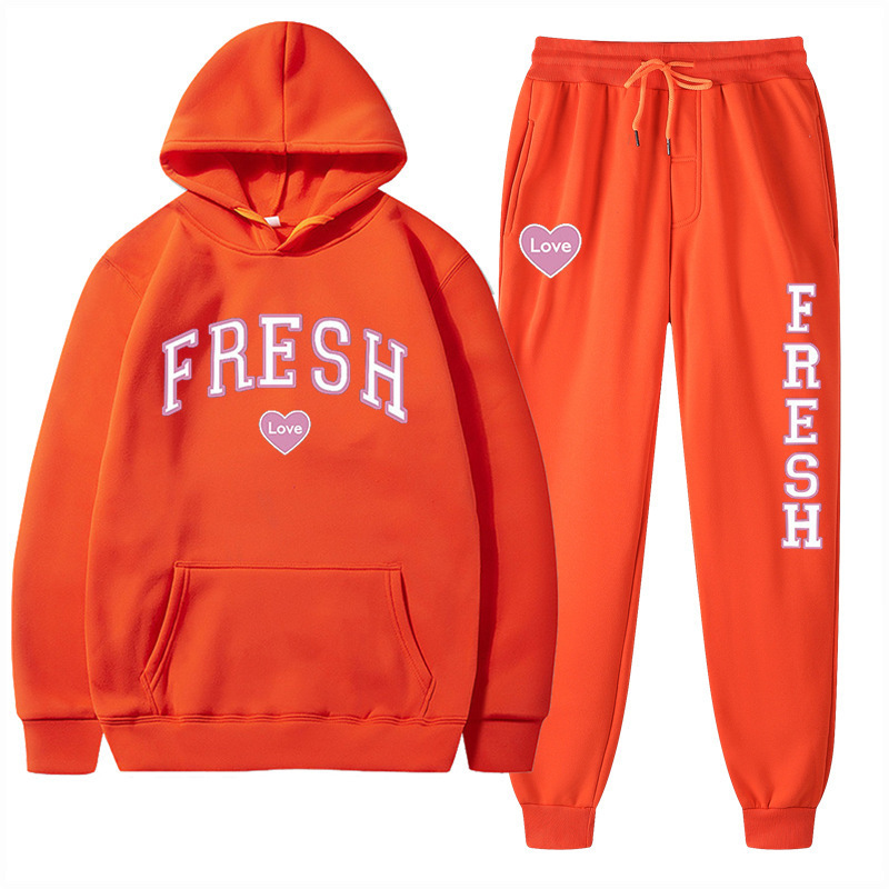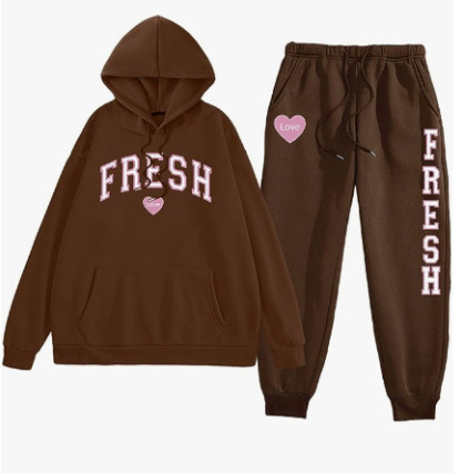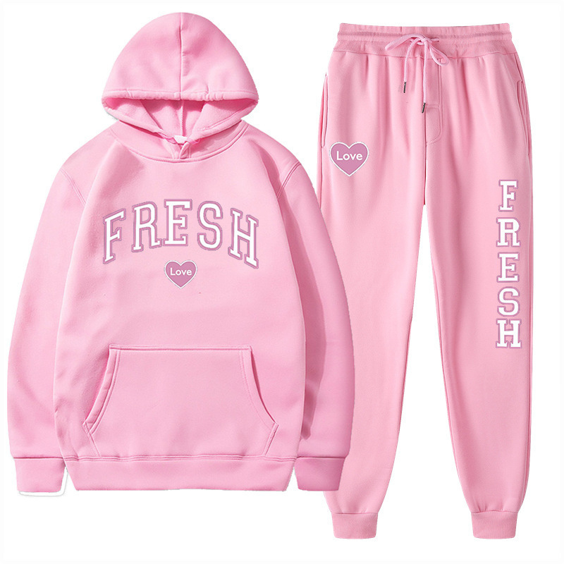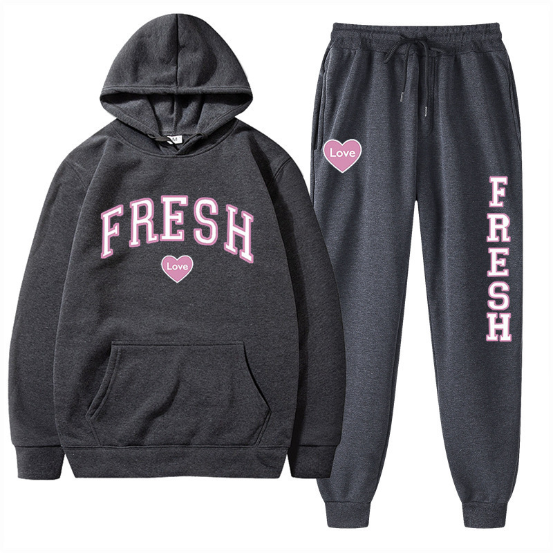 style new fashionable printed hoodie, autumn and winter fleece warm hoodie, casual sports women's set