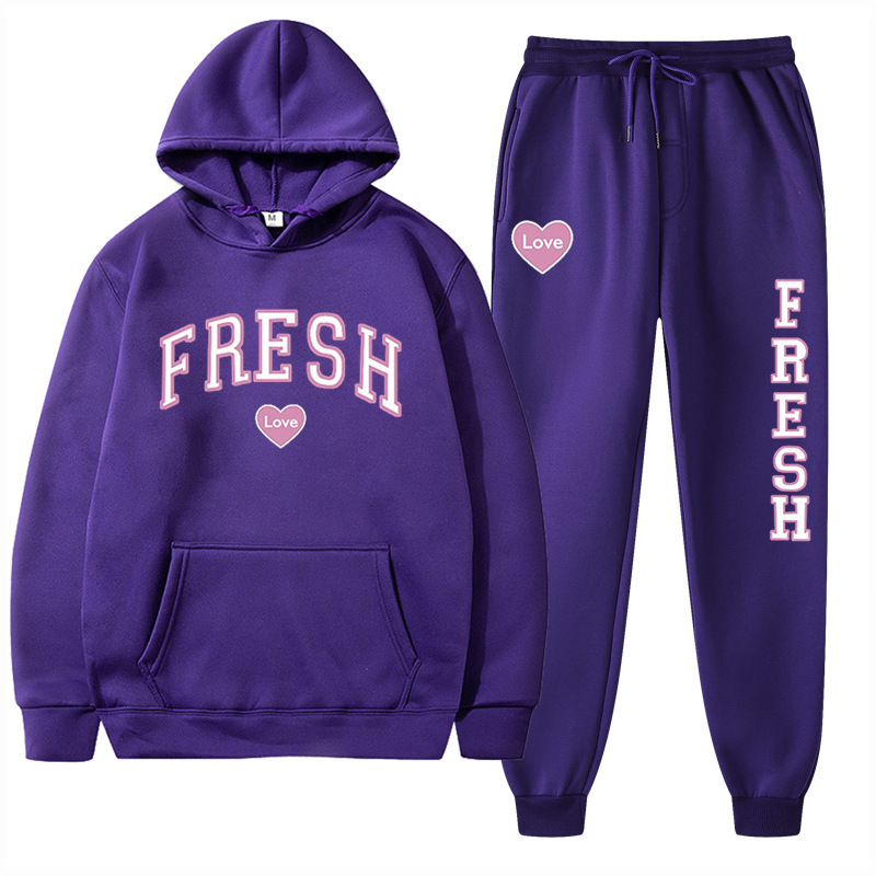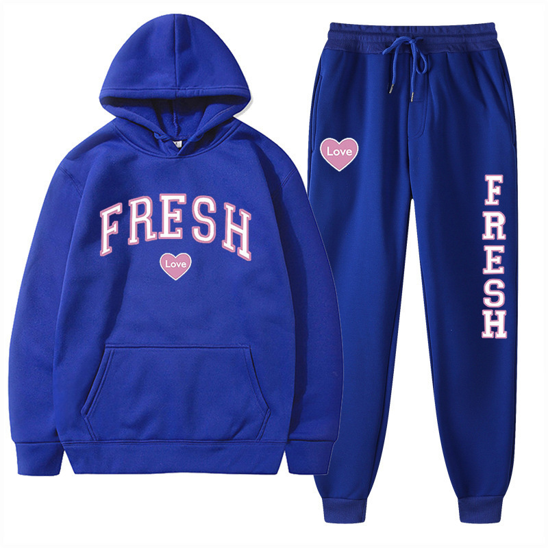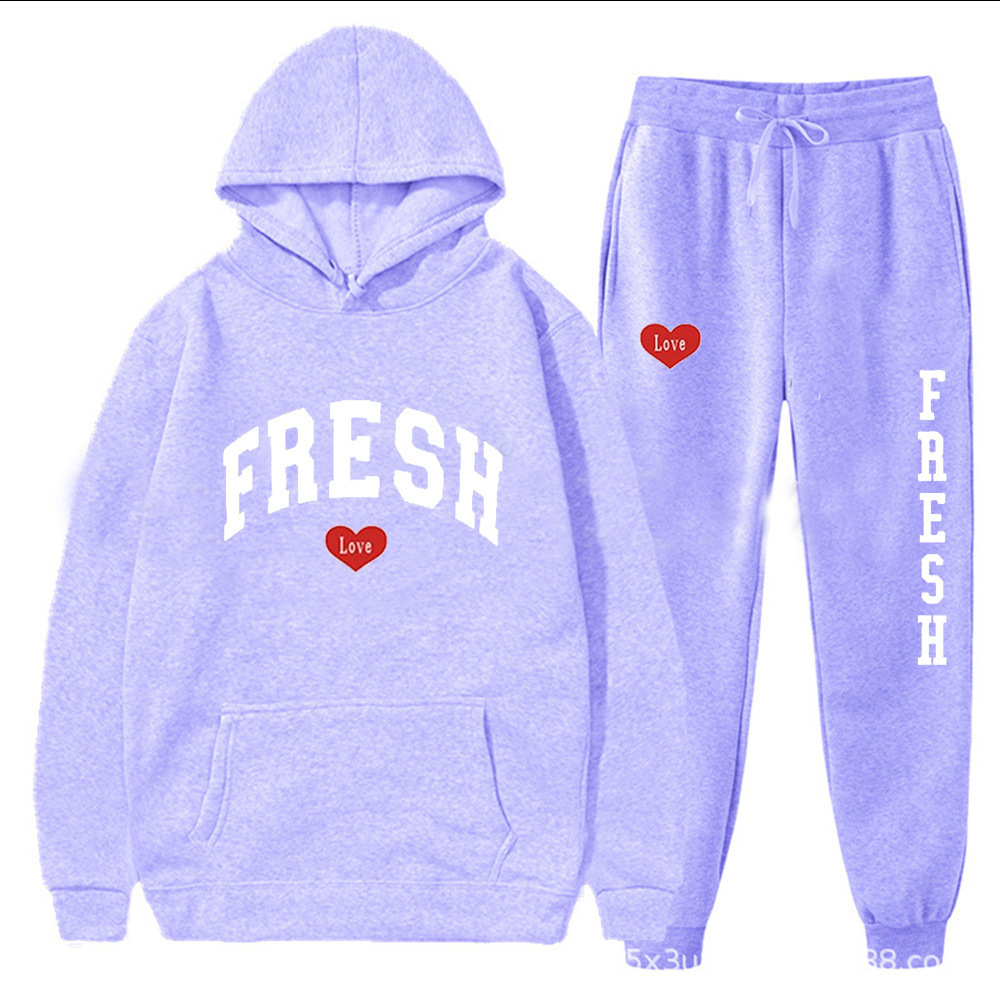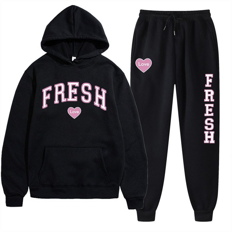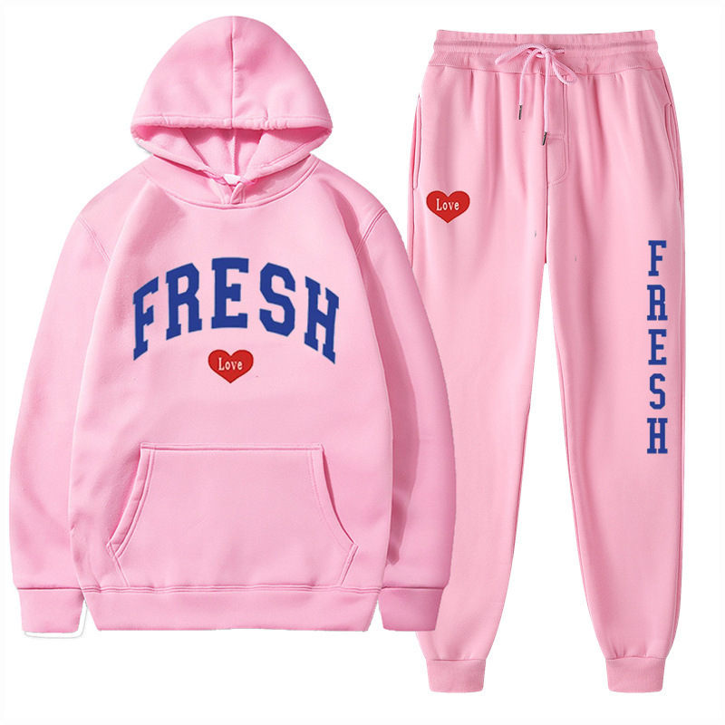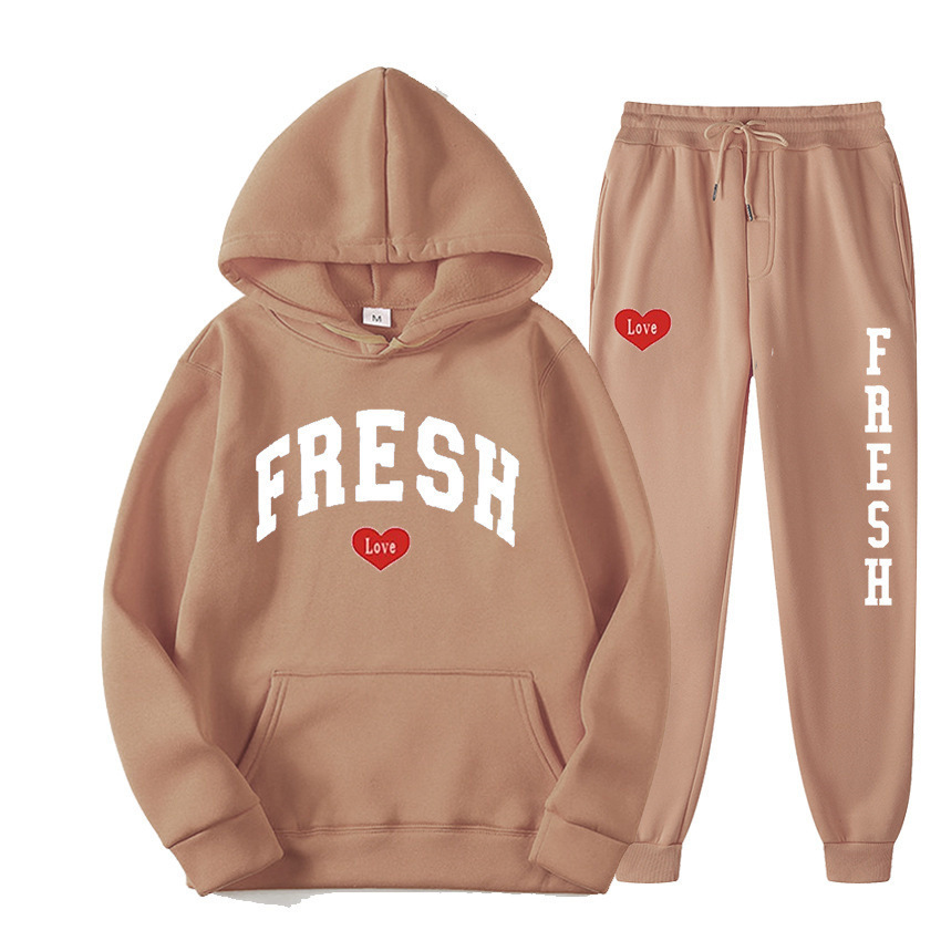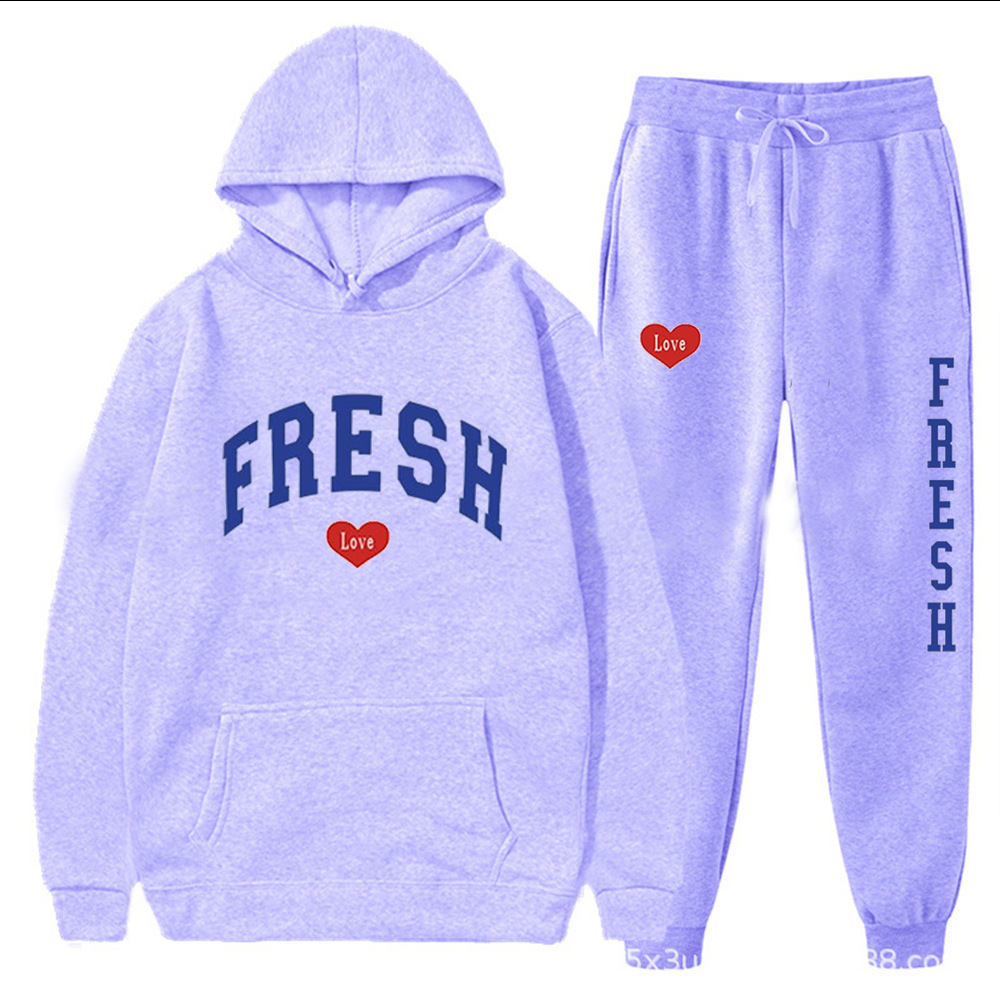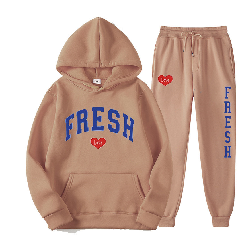 style new fashionable printed hoodie, autumn and winter fleece warm hoodie, casual sports women's set
