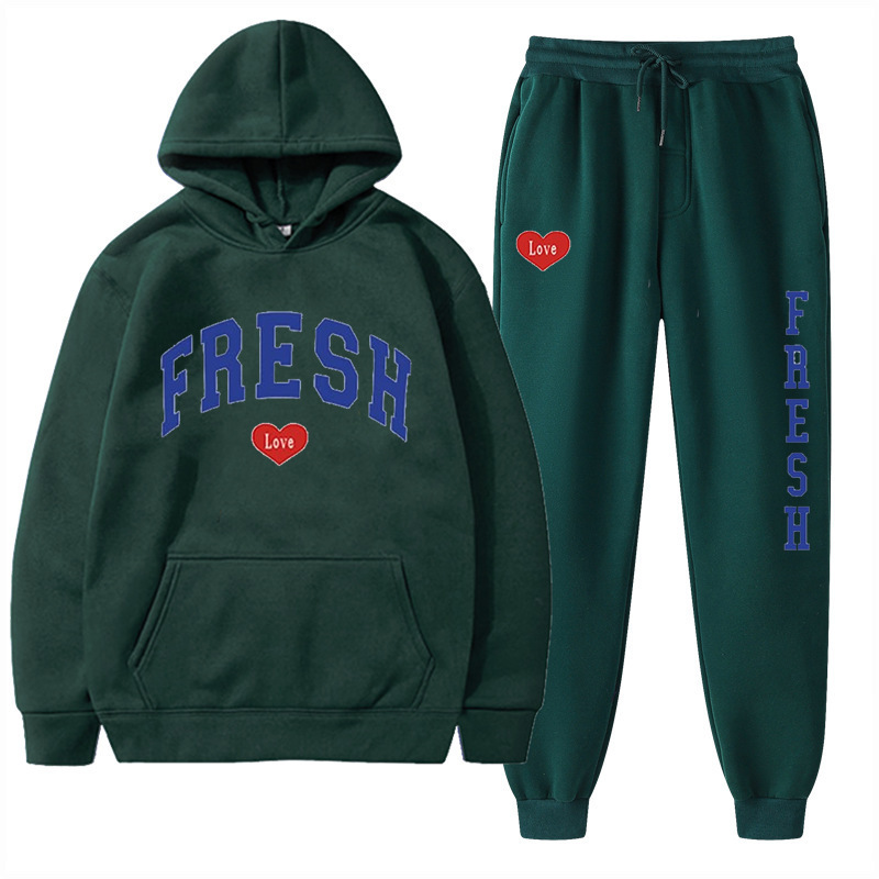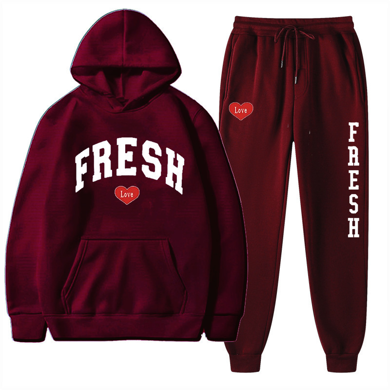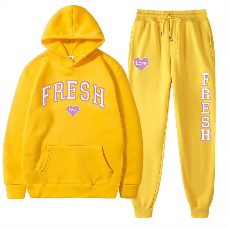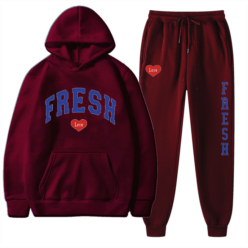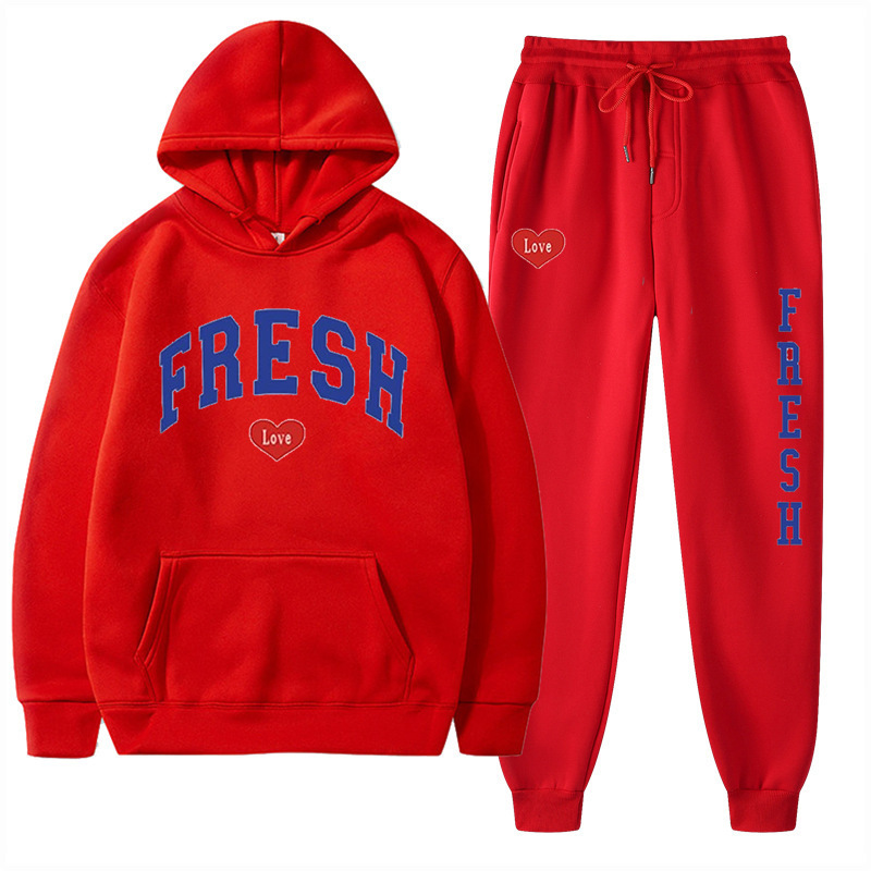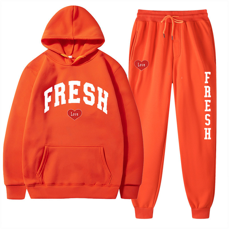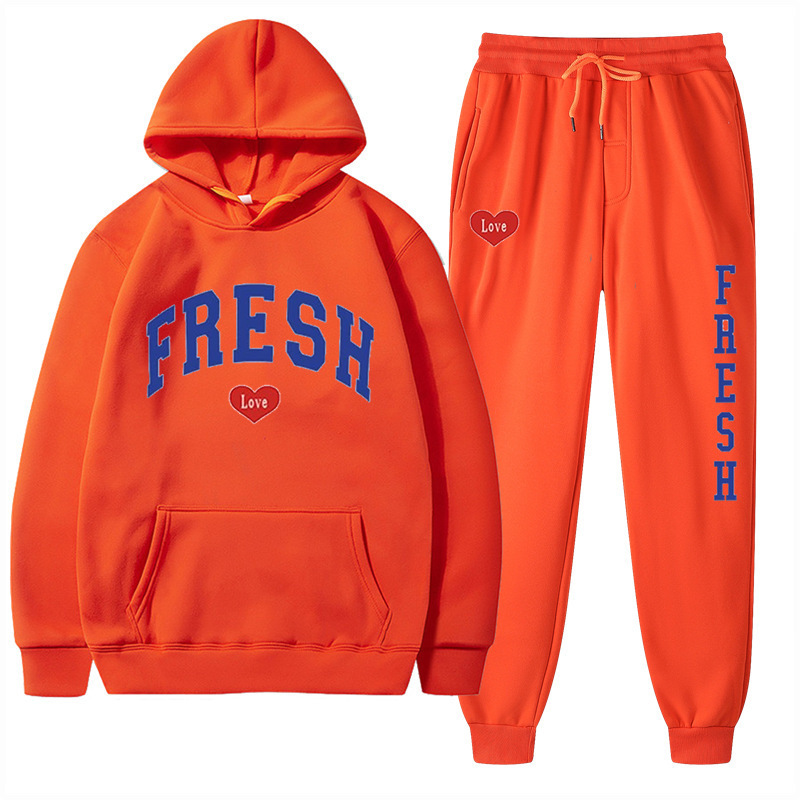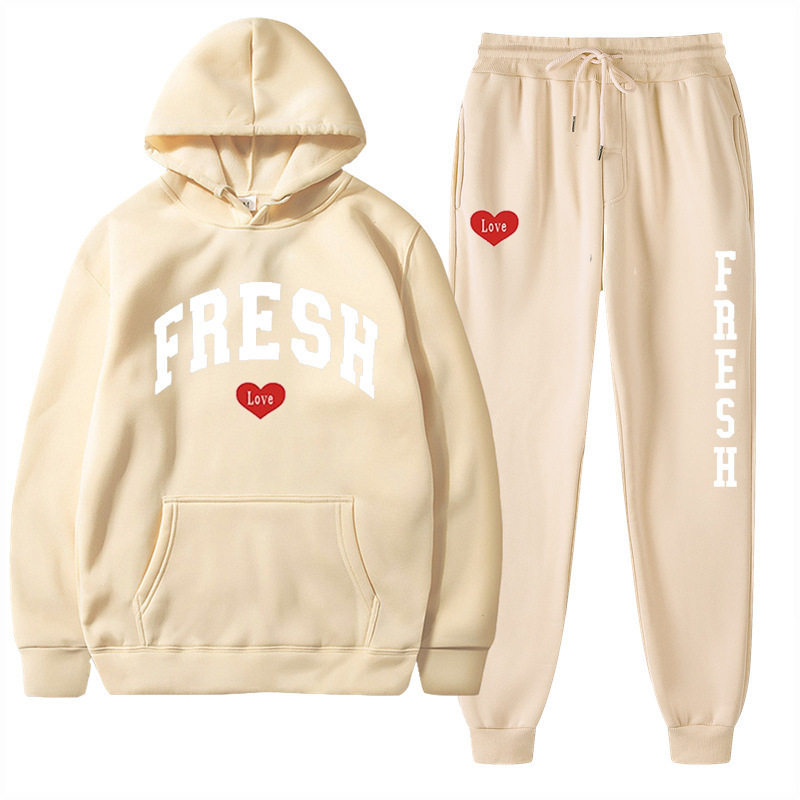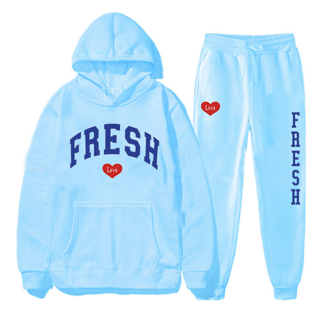 style new fashionable printed hoodie, autumn and winter fleece warm hoodie, casual sports women's set
