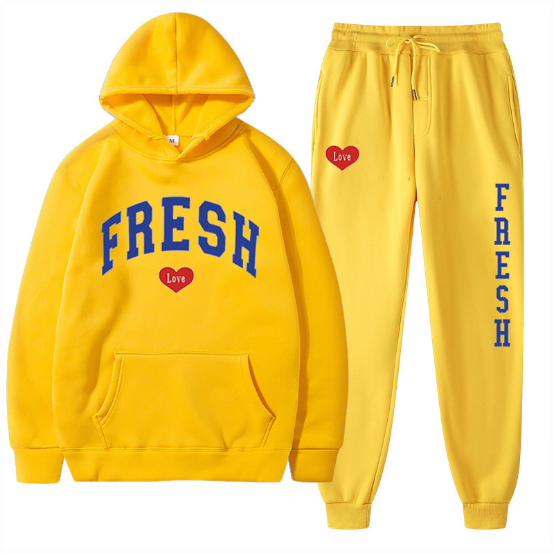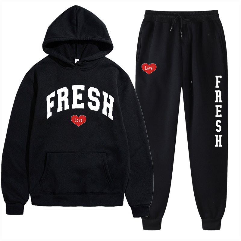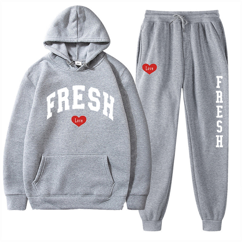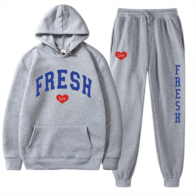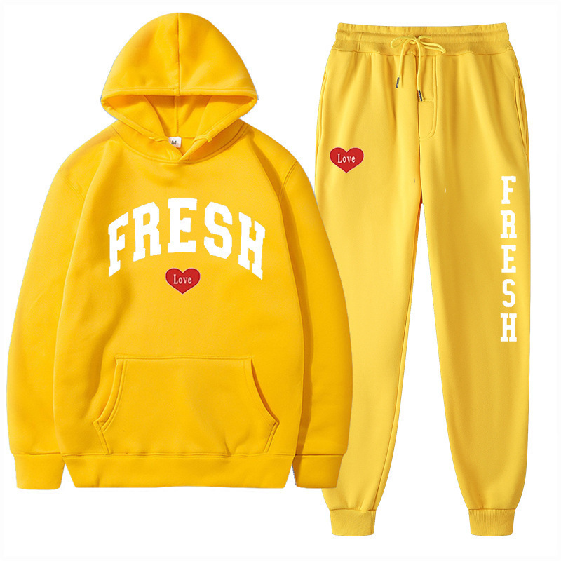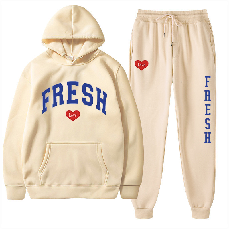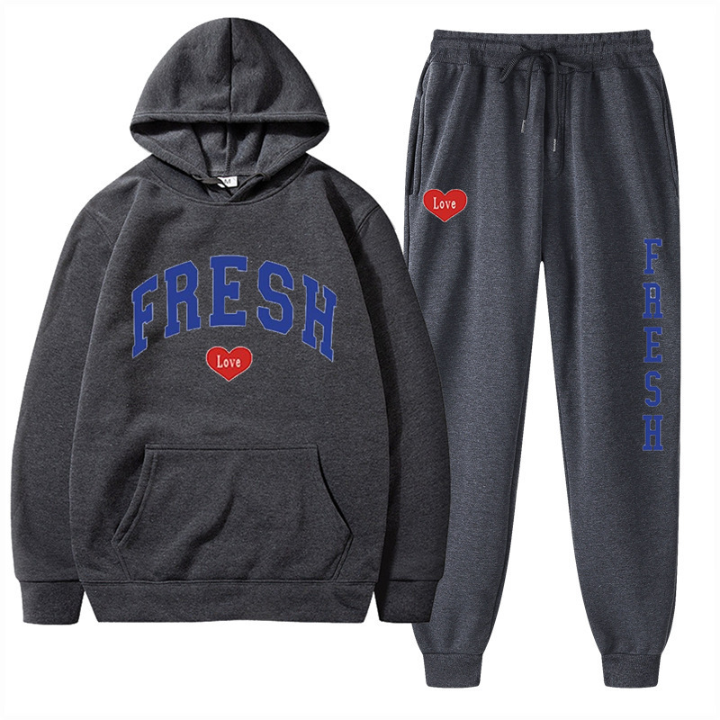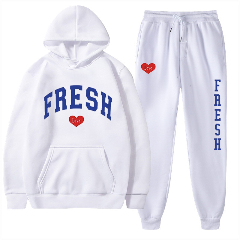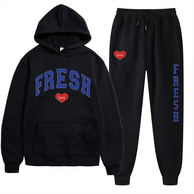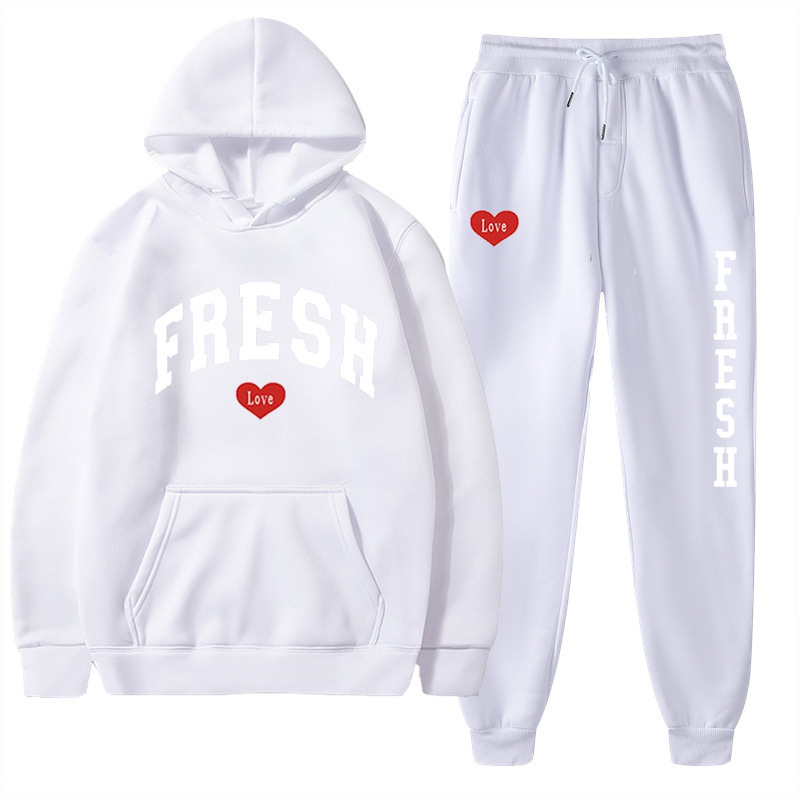 style new fashionable printed hoodie, autumn and winter fleece warm hoodie, casual sports women's set