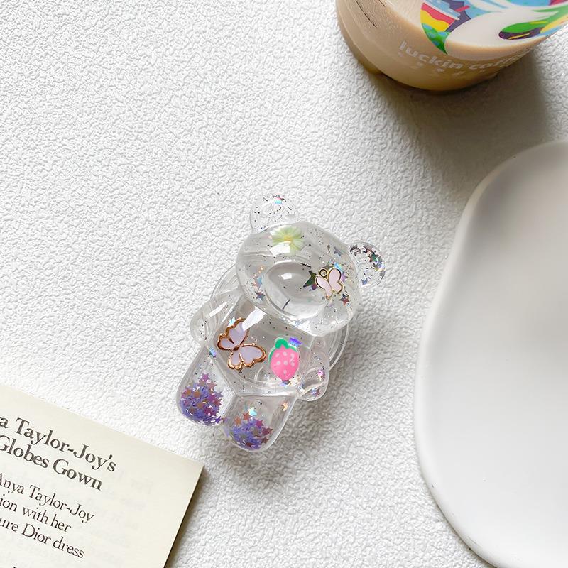 Support d'airbag de téléphone Instagram coréen, ours fleur transparente papillon, petites paillettes fraîches, stable et portable