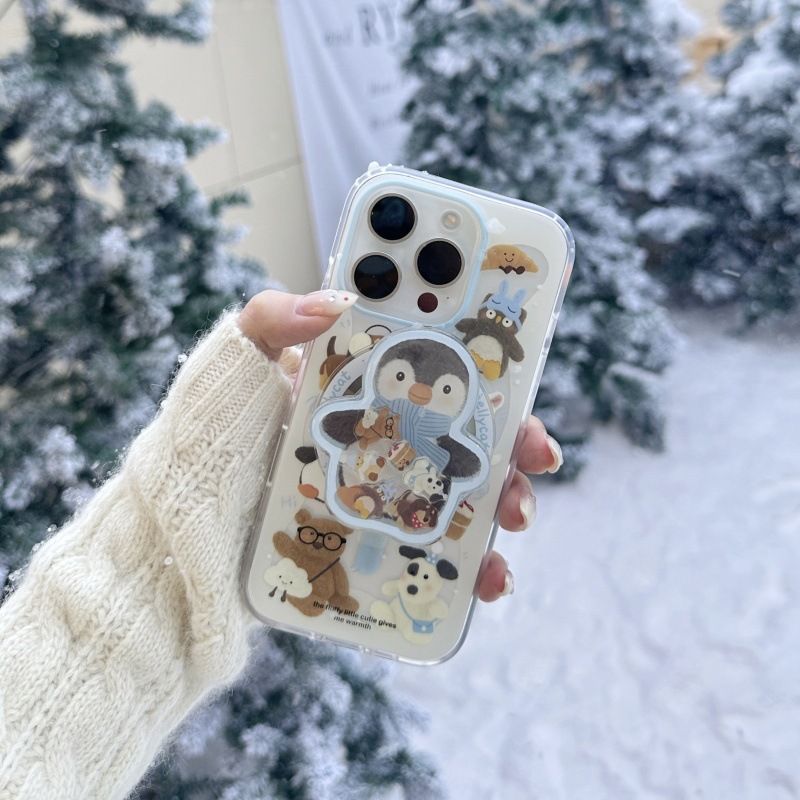 Support magnétique en forme de pingouin avec écharpe mignonne et musique oscillante, compatible avec iPhone 13, Promax, iPhone 15 et 14