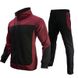 Spring and Autumn style men's hooded patchwork contrasting black, red, gray, blue, yellow casual sports loose long sleeved long pants hoodie set