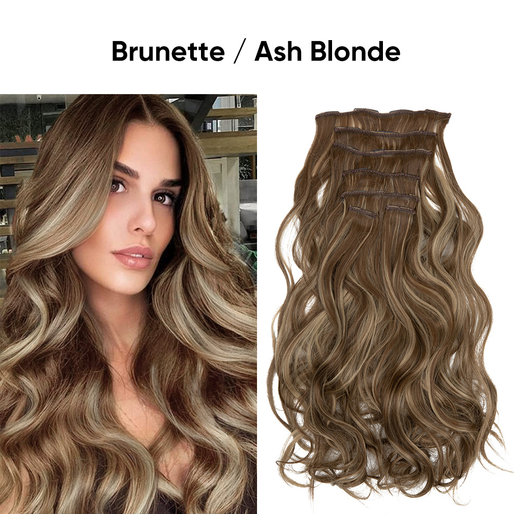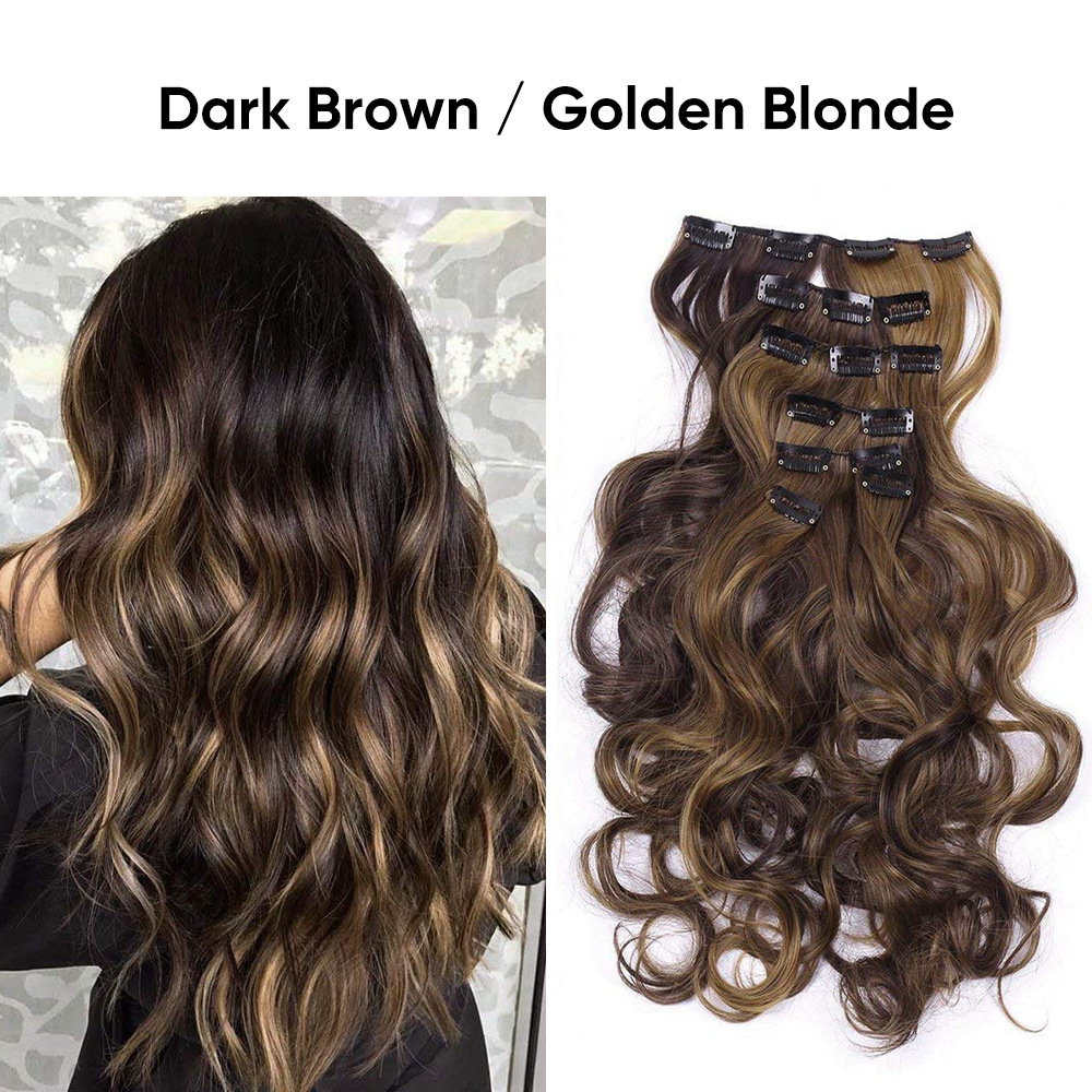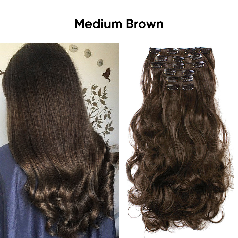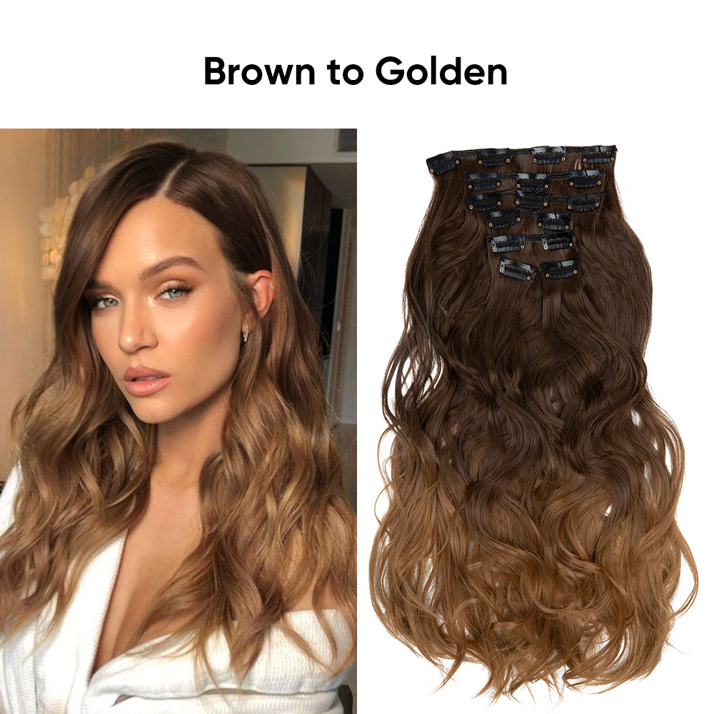 Ensemble de perruques synthétiques 16 cartes 7 pièces, cheveux longs bouclés pour femmes, extensions de cheveux en soie mate haute température