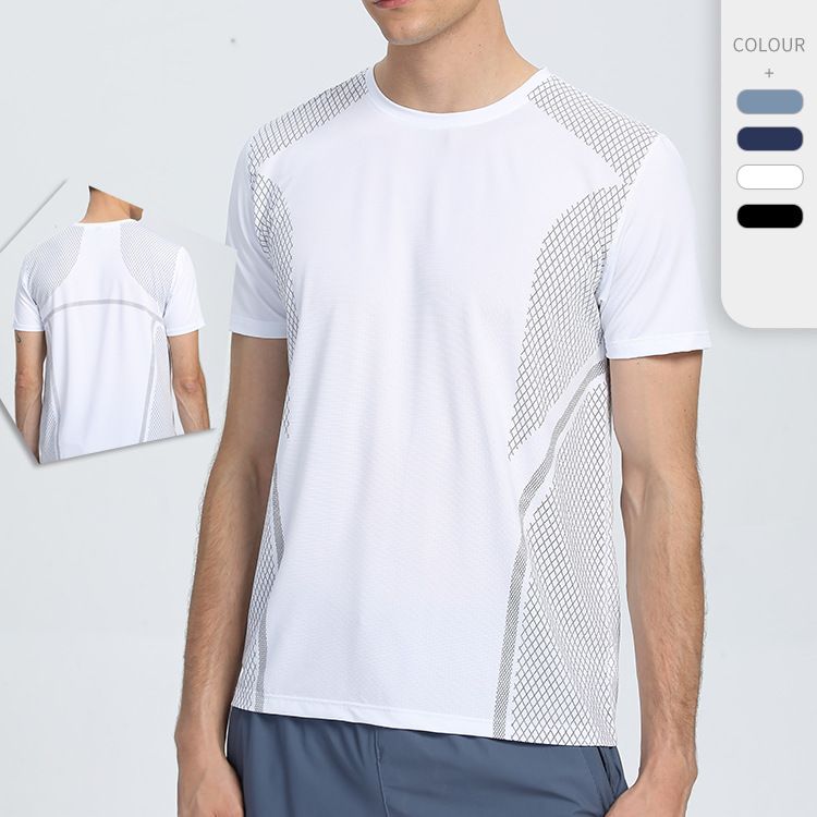Printed sweat wicking quick drying T-shirt for men's summer new round neck elastic breathable short sleeved outdoor sports training suit