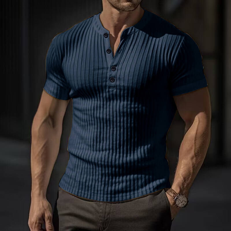 T-shirt à manches courtes pour homme, coupe slim, coupe ajustée, couleur unie, fil élastique, style américain Henry