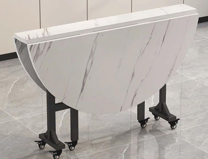 Table ronde de salon, table à manger pliable multifonctionnelle et mobile pour petits appartements avec roulettes