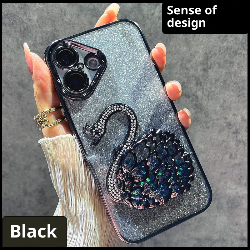 Étui de téléphone TechGlobe série 16, protection d'objectif Niche pour iPhone 15 Pro Max, motif cygne pailleté, 13, anti-traces de doigts