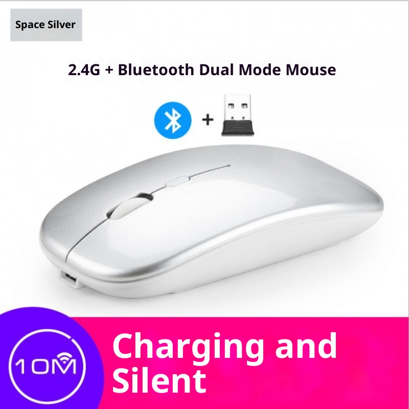 Souris sans fil silencieuse Techglobe Cross-Border, Bluetooth double mode, rechargeable et lumineuse, pour ordinateur portable ou de bureau.