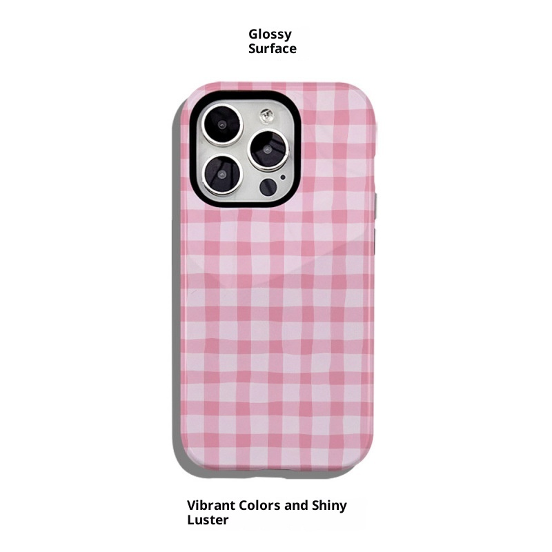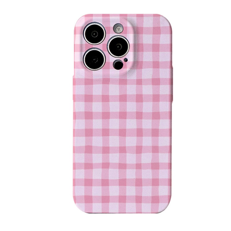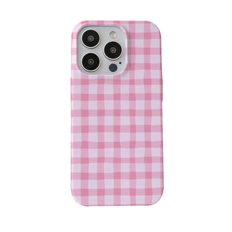 Étui de téléphone TechGlobe POD Cross-Border Simple Anti-traces de doigts Rose à carreaux Large Précision Trou Deux-en-Un Film Couverture Intégrale
