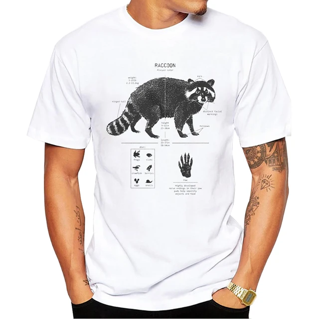 TEEHUB T-shirt à manches courtes et col rond pour homme avec imprimé anatomie de raton laveur vintage TEEHUB