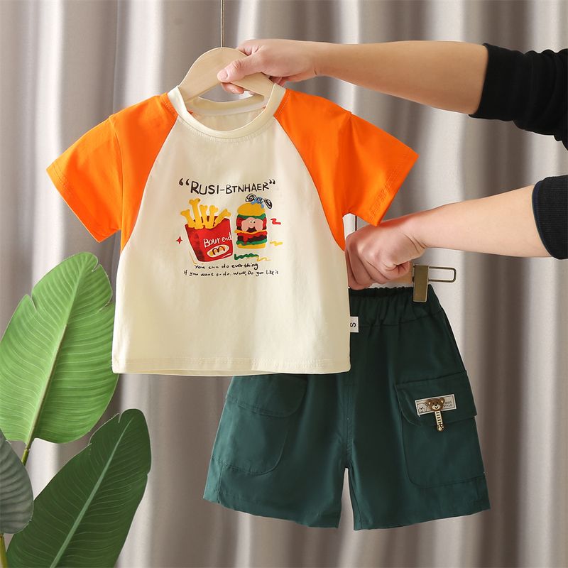 Boys Summer Outfit 2025 New Stylish Baby Children's Clothing Baby Summer Cartoon Round Neck Short Sleeve Two-Piece Set Trendy