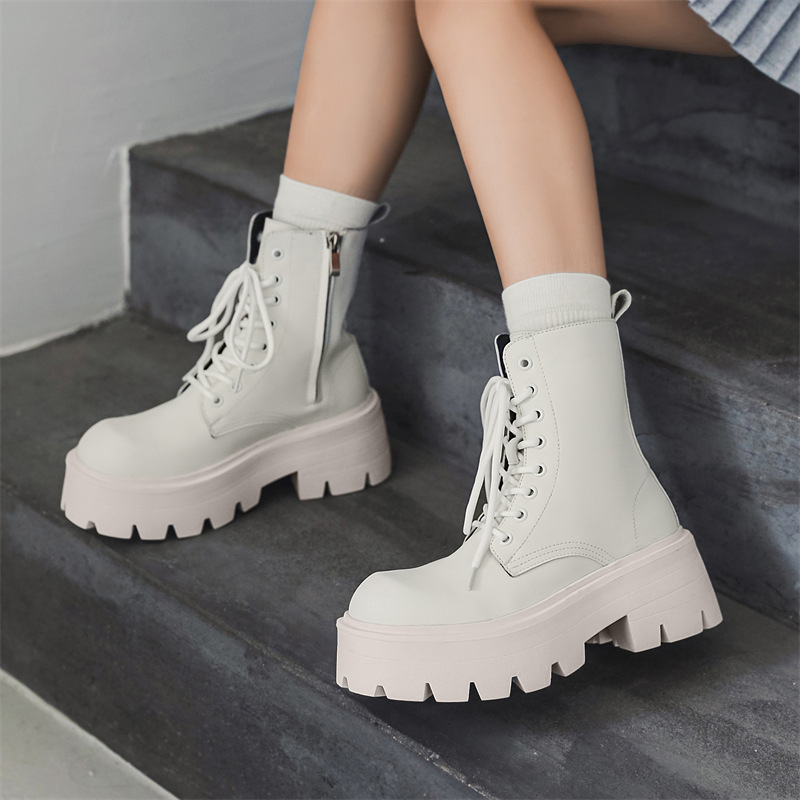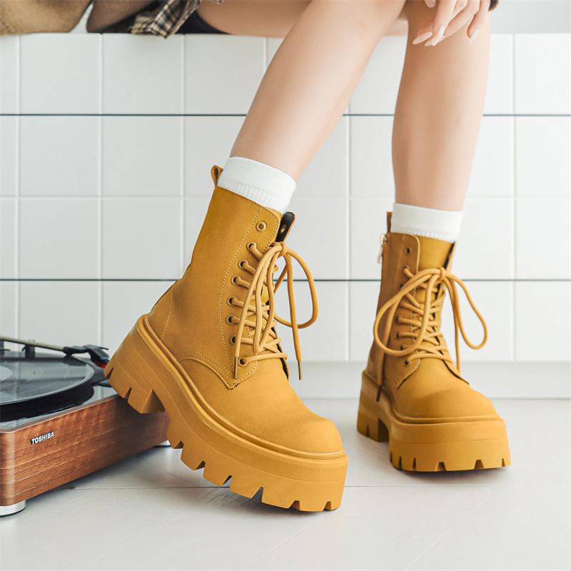 Bottes Martin à semelles épaisses pour hommes, bottes mi-hautes de style britannique, chaussures décontractées en cuir pour hommes, bottes à la mode 7368-R