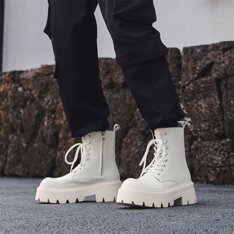 Thick Sole Design:The Martin Boots feature a thick sole design, providing extra comfort and support for your feet. Ideal for long walks or standing for extended periods. High Heel Style:These boots have a high heel style, adding a touch of sophistication to your outfit. Perfect for casual wear or special occasions. British Style:Inspired by British fashion, these Chelsey boots bring a unique and timeless look to your wardrobe. They're a great choice for those who appreciate classic style. Leather Material:Made from High-quality leather, these boots are durable and breathable. They're designed to withstand the test of time and keep you comfortable. Trendy Boots:These trendy boots are a popular choice among young men aged 18-40. They're a stylish addition to any outfit, whether you're going out for a day of sightseeing or attending a party. Comfortable Fit:With their comfortable fit, these boots ensure a snug and secure feel on your feet. They're designed to provide maximum comfort throughout the day.