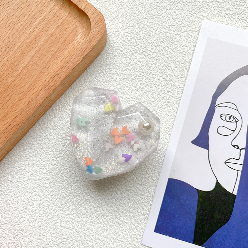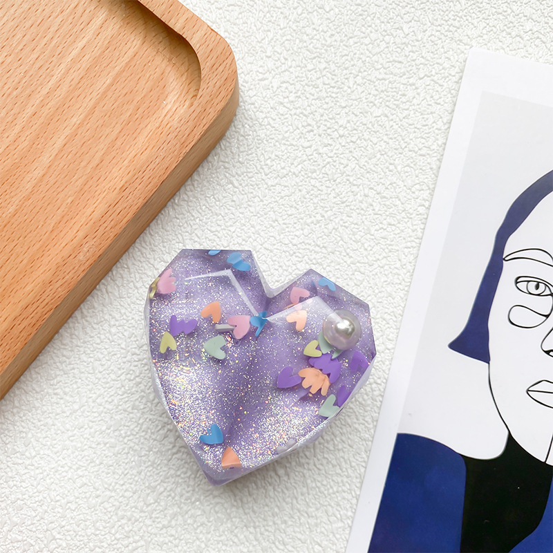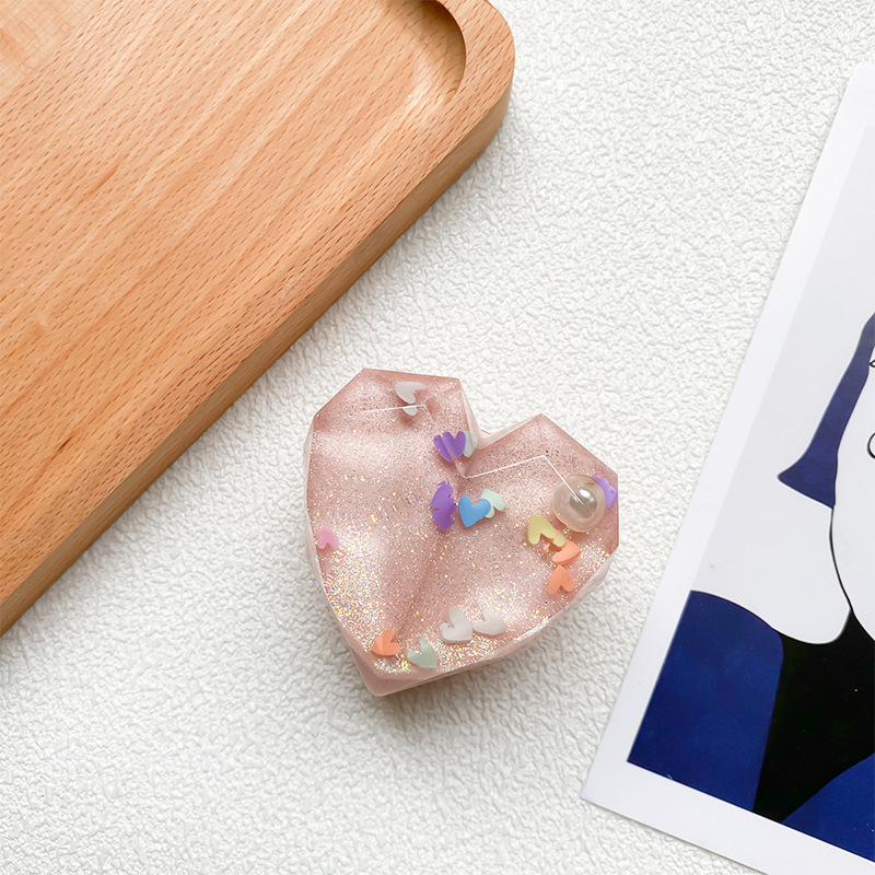 Support d'airbag de téléphone d'amour tridimensionnel avec adhésif, paillettes de perles, autocollant arrière rétractable, support stable pour