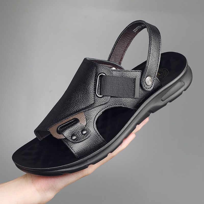 Top layer cowhide sandals for men, outdoor open toe dual-use slippers, casual leather soft sole, anti slip versatile beach shoes