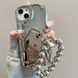 Étui de support en métal plaqué 3D en forme de cœur pour iPhone 14 13 12 15 Pro Max XR XS Sier Hang Bracelet rond Chaîne Couverture