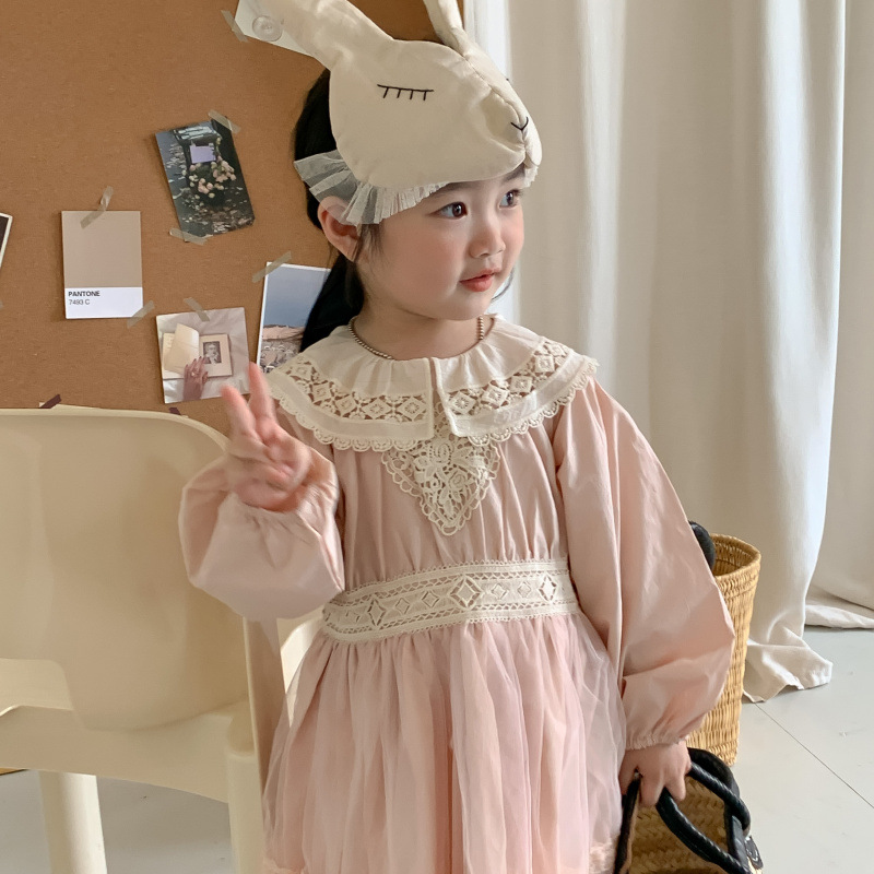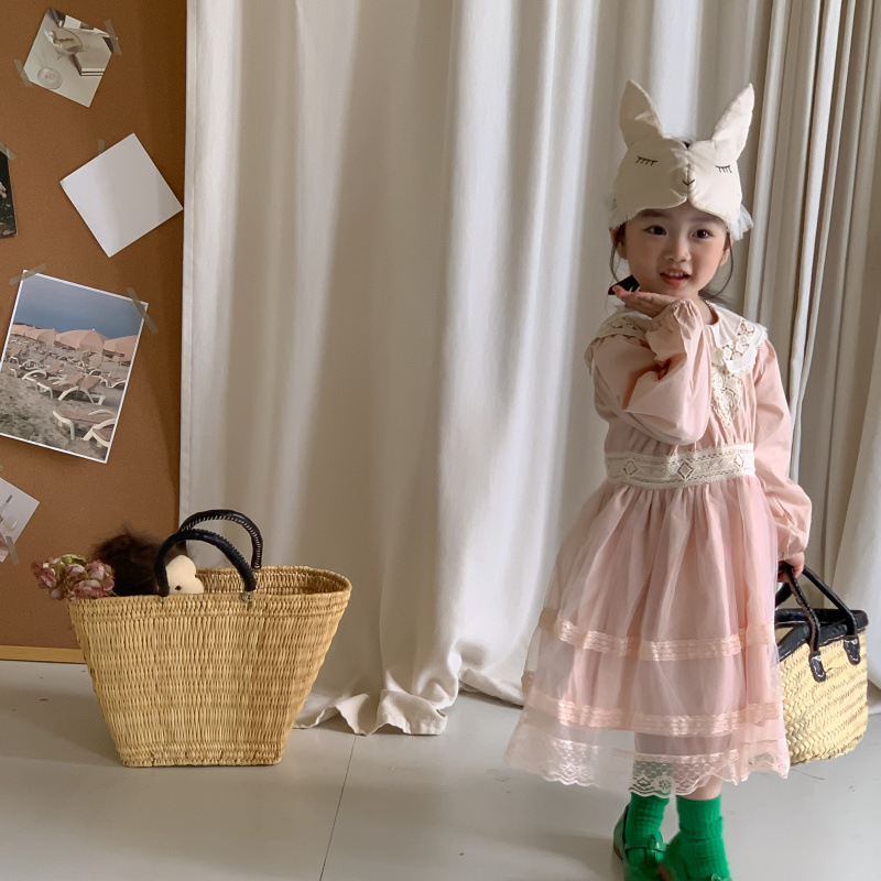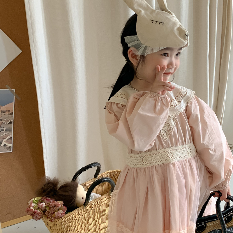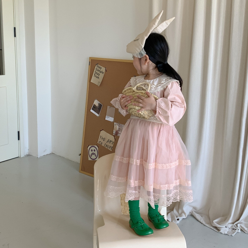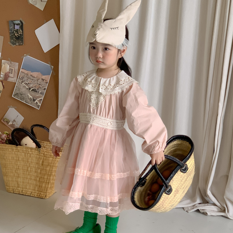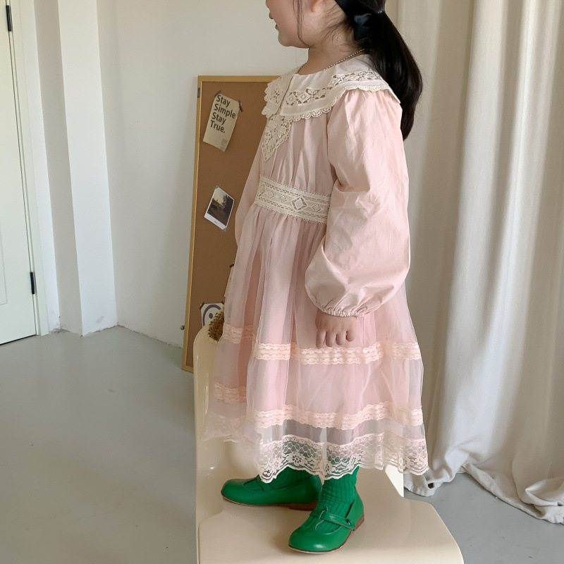 Korean Children's Wear 2023 Autumn New Product Children's Princess Dress Fashionable Korean Edition Lace Lace Girl's Dress