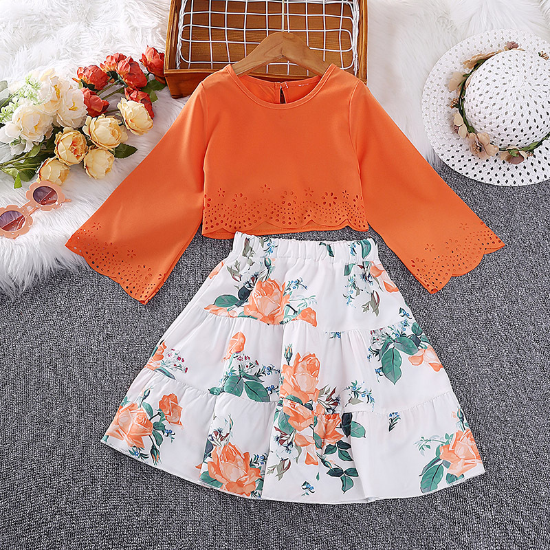 Vêtements pour enfants, haut à manches longues, demi-jupe imprimée, ensemble deux pièces pour filles, nouvelle collection printemps 2024