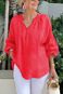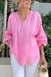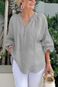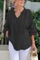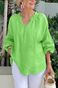 Vêtements pour femmes printemps et été décontractés col en V couleur unie coton et lin hauts à manches longues