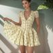Vêtements pour femmes Été Nouveau produit Mode Premier amour Floral Manches bouffantes Col en V Slim Fit Robe française Jupe moelleuse