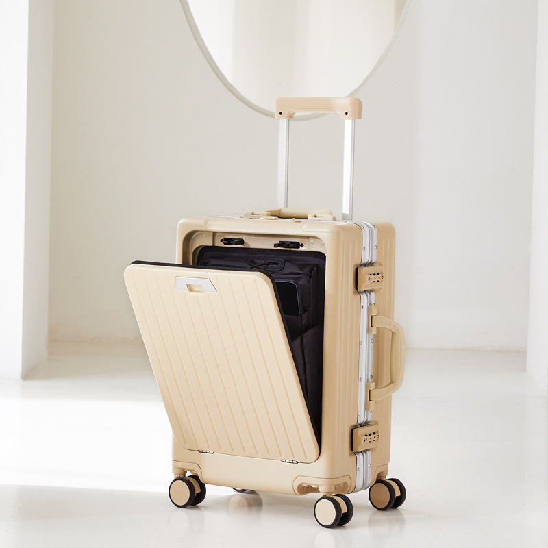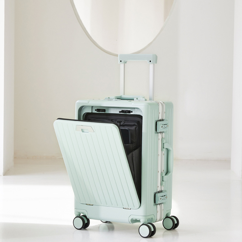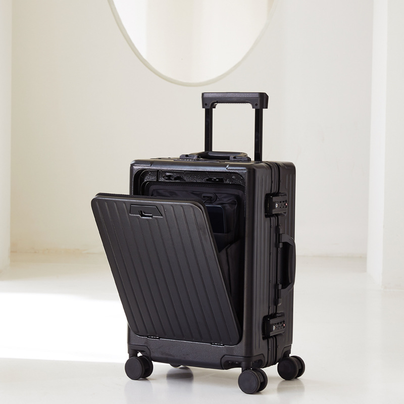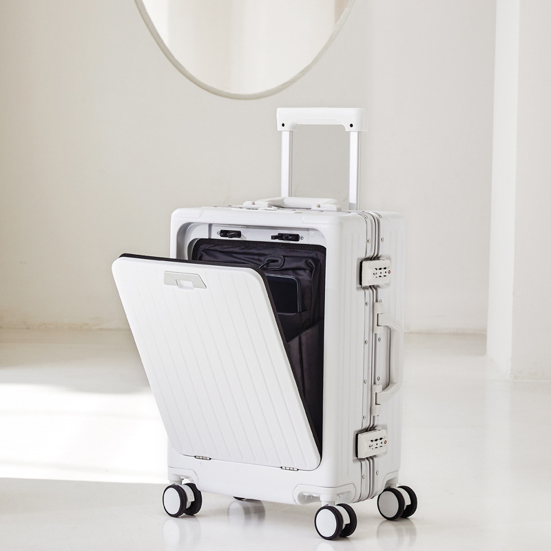 Valise trolley silencieuse à ouverture frontale et cadre en aluminium, roulettes universelles, format professionnel 20 pouces, valise de voyage homme 24 pouces.