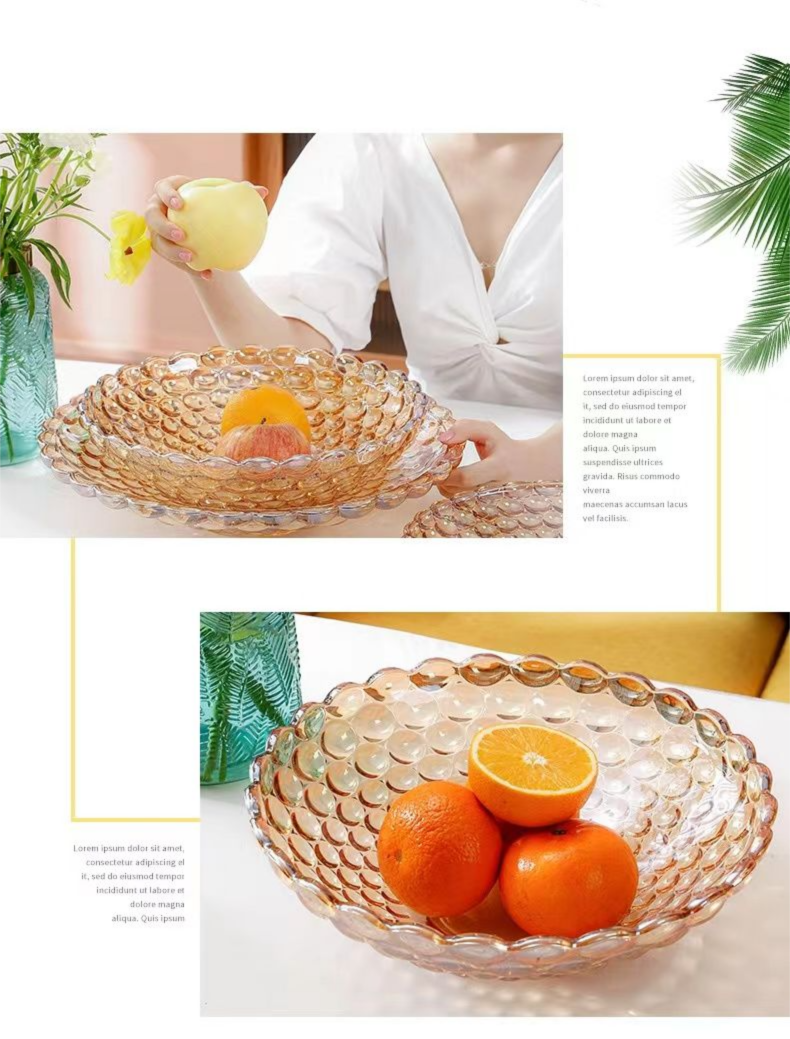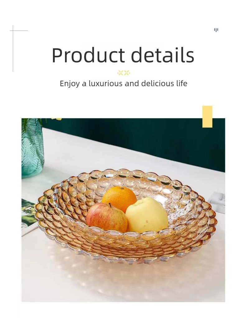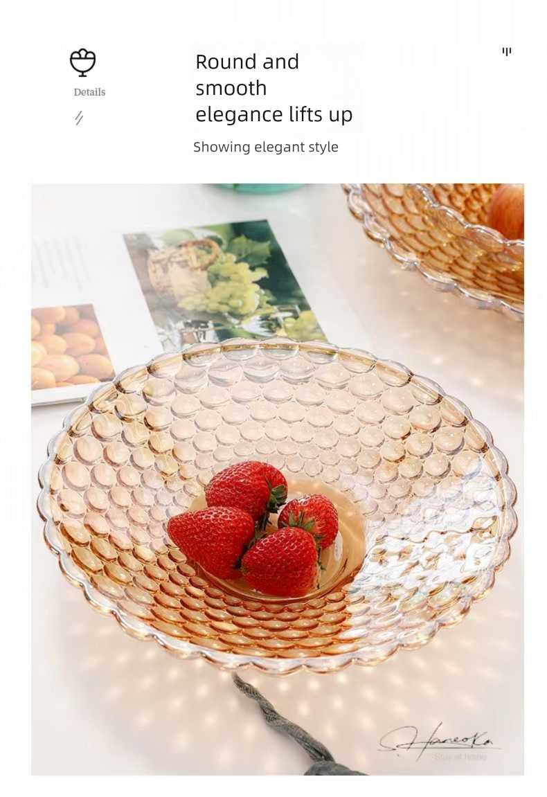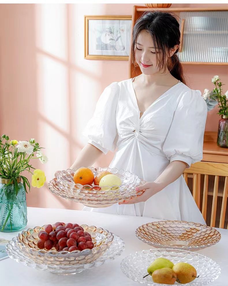 European Style Crystal Glass Fruit Plate for Home Modern Living Room Coffee Table Creative Internet Celebrity Large Snack Dried Fruit Candy Plate