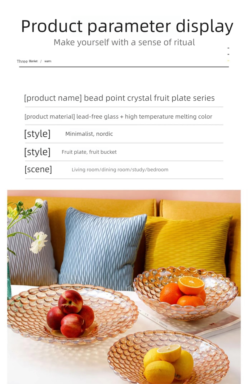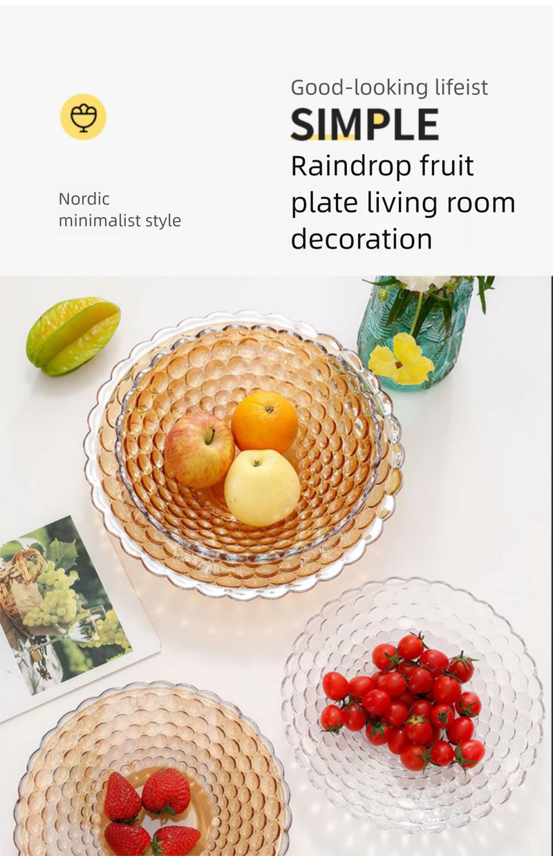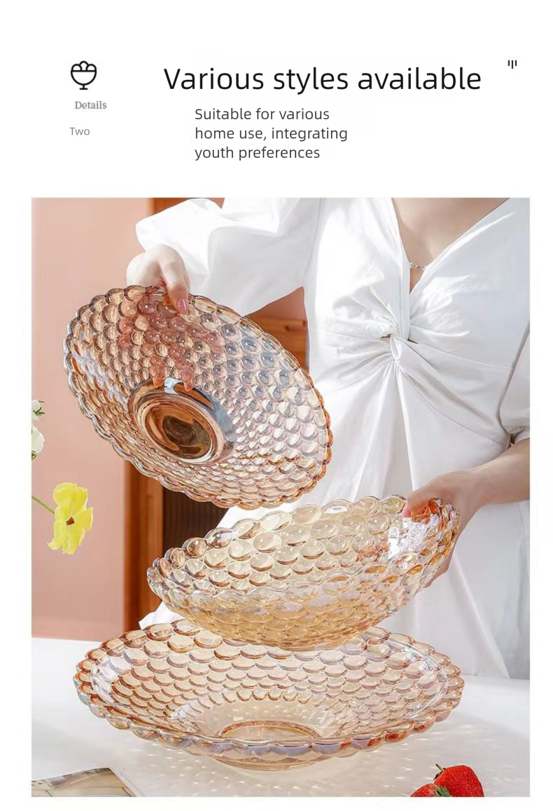 European Style Crystal Glass Fruit Plate for Home Modern Living Room Coffee Table Creative Internet Celebrity Large Snack Dried Fruit Candy Plate