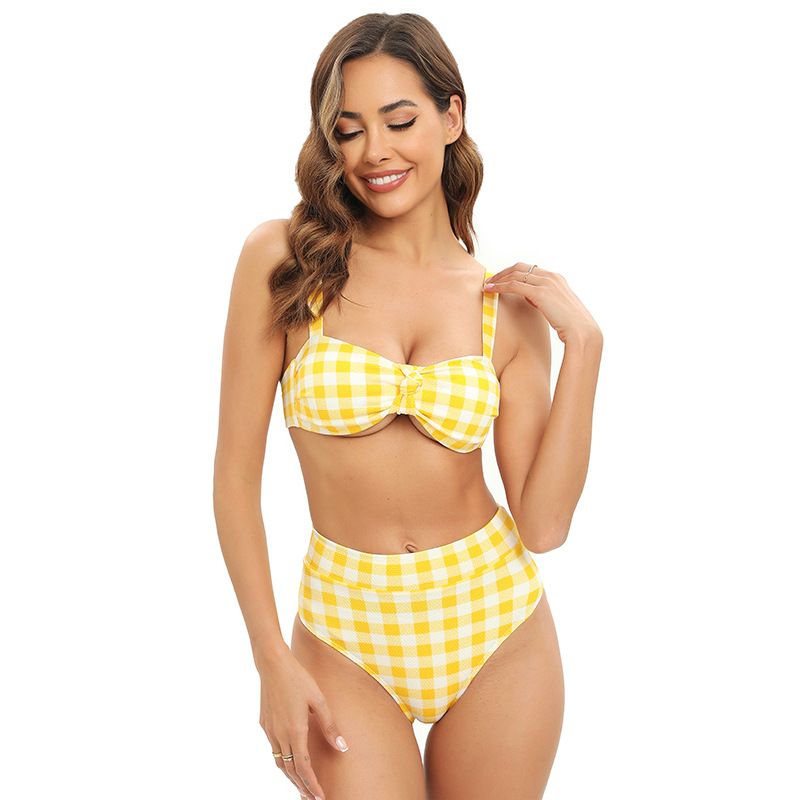 Verve 2024 Nouveau Maillot de Bain Deux Pièces Bikini Couleur Unie Trois Pièces Imprimé Sexy Bretelles Plaid