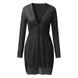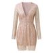 Verve 2025 Robe moulante sexy à col en V profond et paillettes dorées transparentes, manches longues, robe de soirée pour femmes, nouvelle mode automne