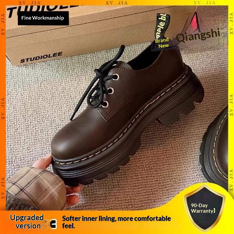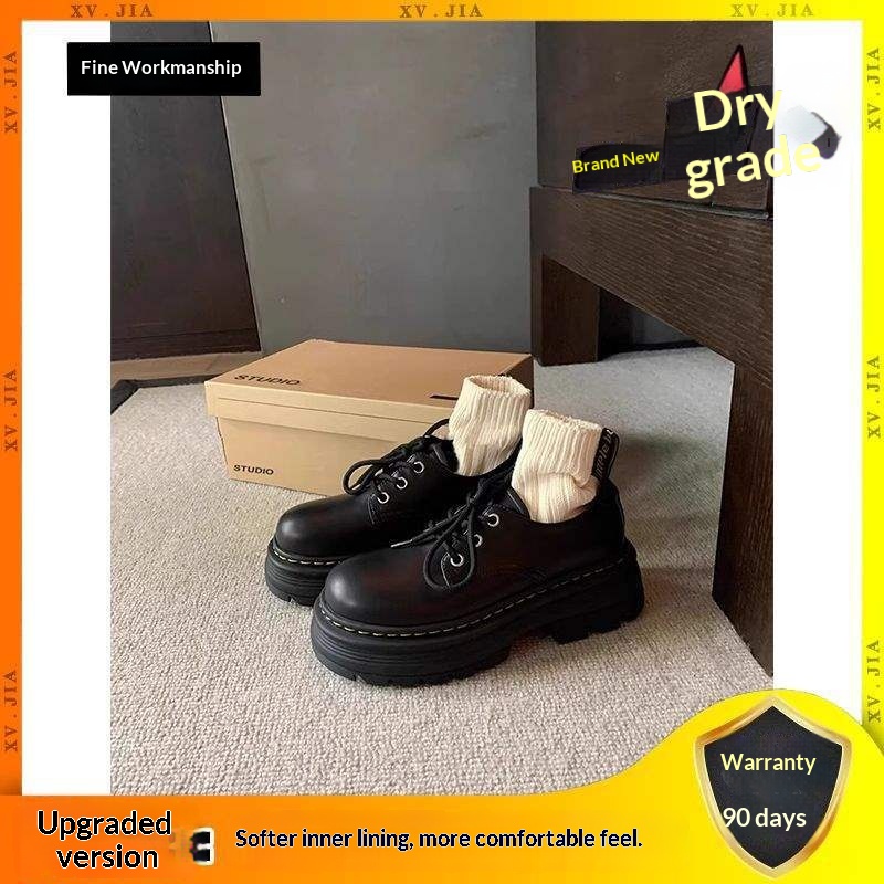 Mocassins Mary Jane noirs en cuir souple à semelle épaisse Voyage Voyage Delias, style britannique, pour l'automne et l'hiver. Mocassins Martin rehaussants en cuir noir, style britannique.