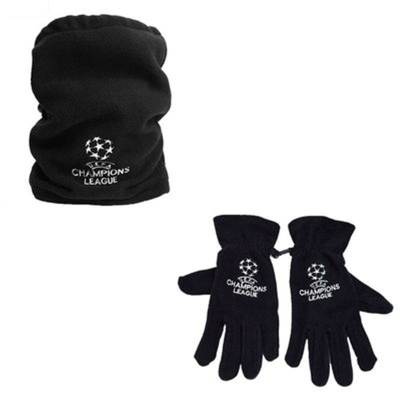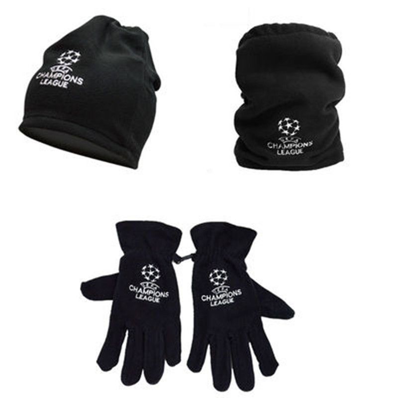 Warm Neck Warmer Gloves Cycling Hat Fleece Thick Face Mask Running Training Champions League Football Three-Piece Set Winter Sports