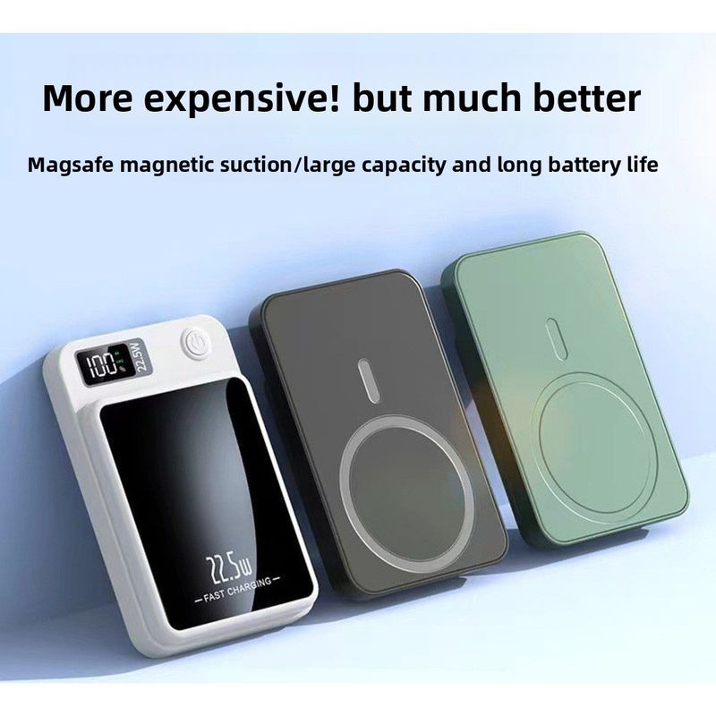 Brand:Neutral,Classification:Power Bank,Item Number:Y211,What type of battery?:Li-ion Battery,Battery Cell Type:Polymer lithium-ion battery cell,Case material:Plastic,Color:Black, White, Green, Purple,Power Capacity:External label 10000 mAh - actual 5000 mAh, external label 20000 mAh - actual 10000 mAh, external label 5000 mAh - actual 5000 mAh, external label 10k mAh - actual 10000 mAh,Size:104*69*19mm,Main downstream platforms:eBay, Amazon, Wish, AliExpress, Independent Station, LAZADA,Main sales regions:Africa, Europe, South America, Southeast Asia, North America, Northeast Asia, Middle East,We have authorized private labels available:yes,Is it exclusively for cross-border export supply?:yes,Is it a patented source product?:No,Charging power:22.5W,Style:creative design,Manufacturer:Jinshenchuang Technology,Rated Capacity:6300,Input Voltage:5V,Battery capacity:10000,Maximum Output Power:22.5W,Voltage:9V 12V,3C Certificate Number:2023260915000014,Charging Protocol:PD3.0,Functionality:Magnetic suction, wireless charging, supports fast charging, with battery level display,Is it only for cross-border?:yes,Is it exclusively for foreign trade?:yes,Standard Type:French Standard, National Standard, German Standard, Japanese Standard, British Standard, Others,Model Number:Y211