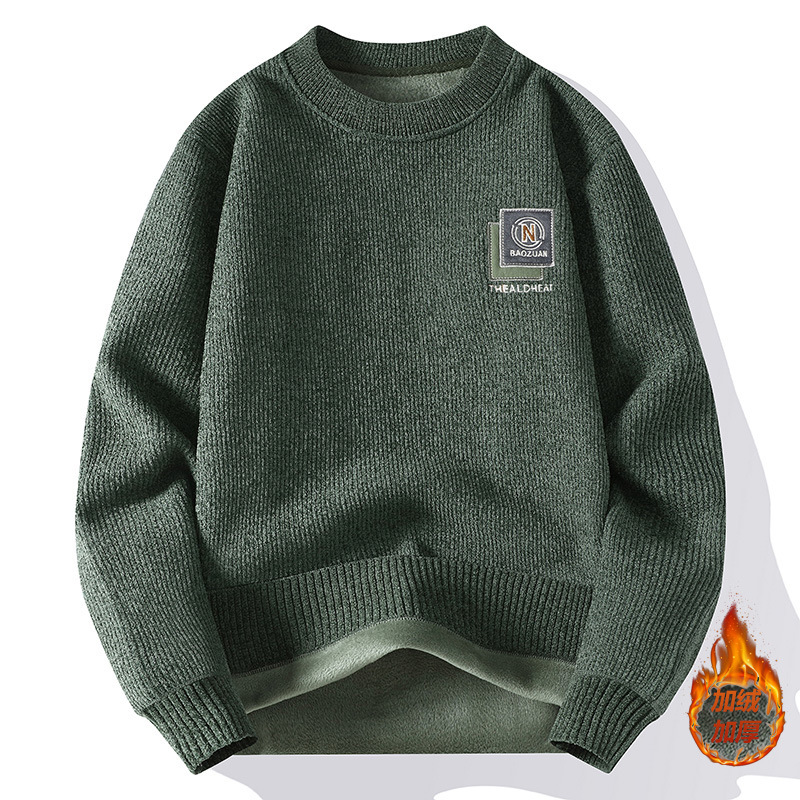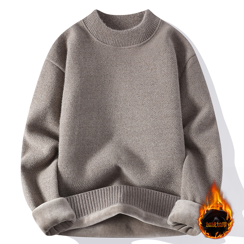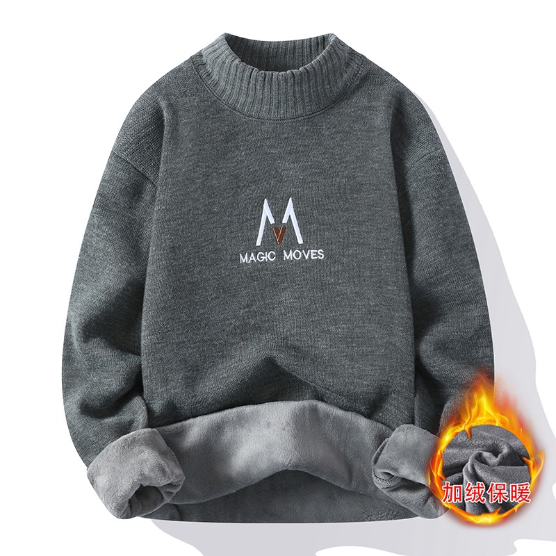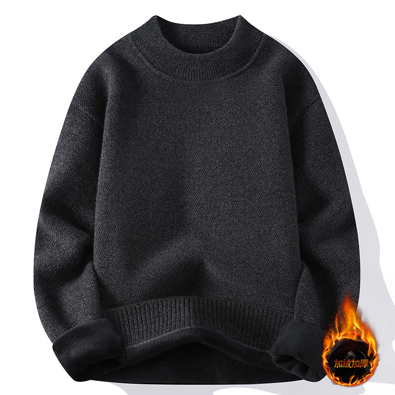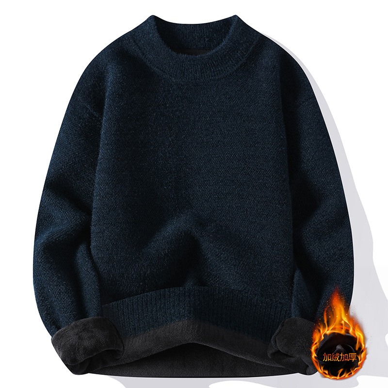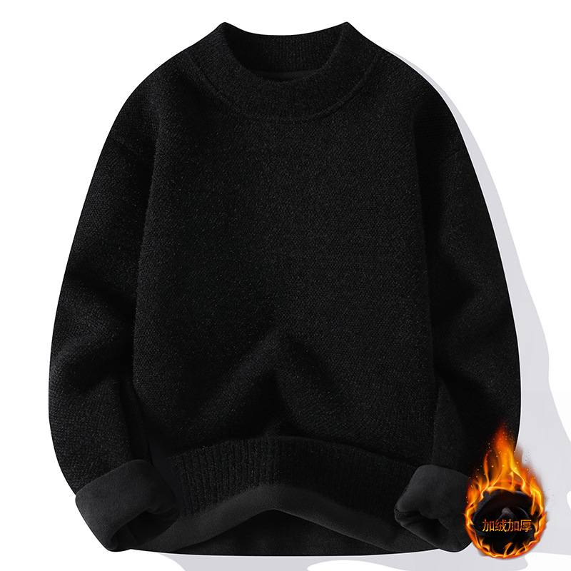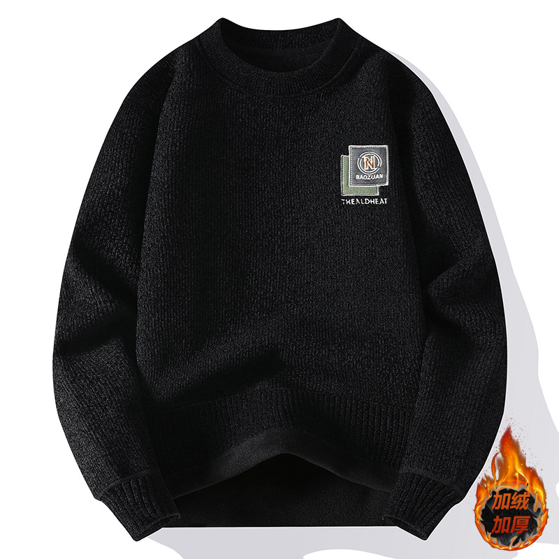Winter sweater men's new round neck solid color knitwear spring and autumn sweater handsome Fried Dough Twists velvet thickened bottoming shirt
