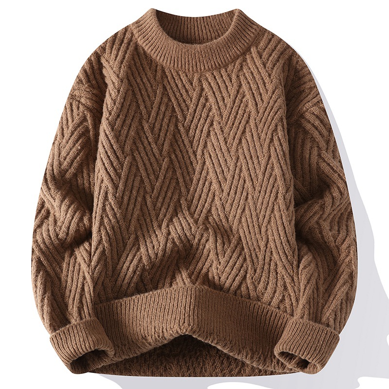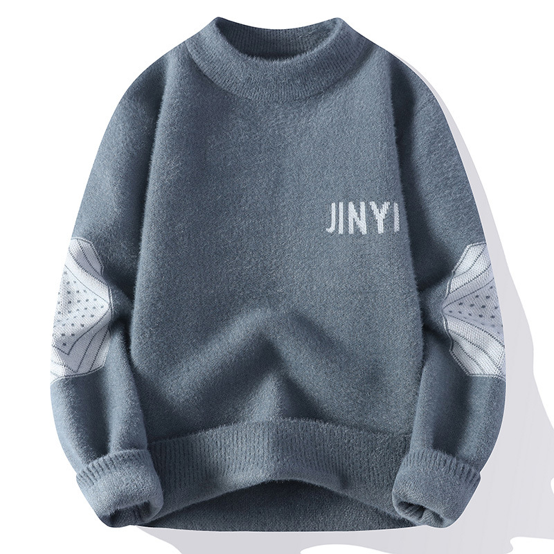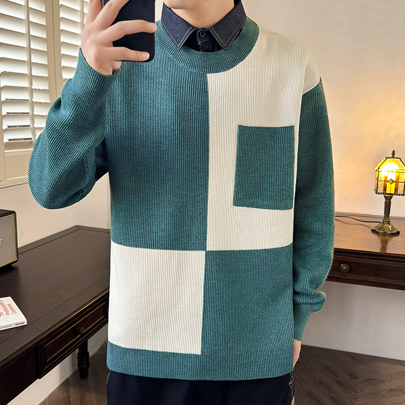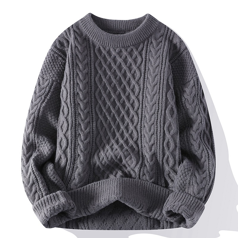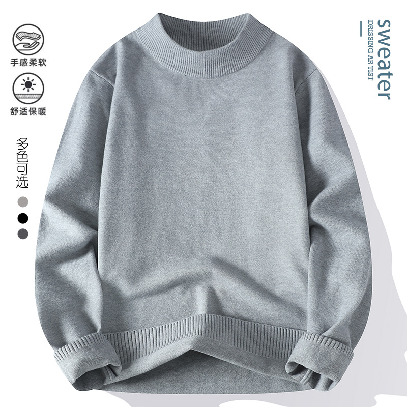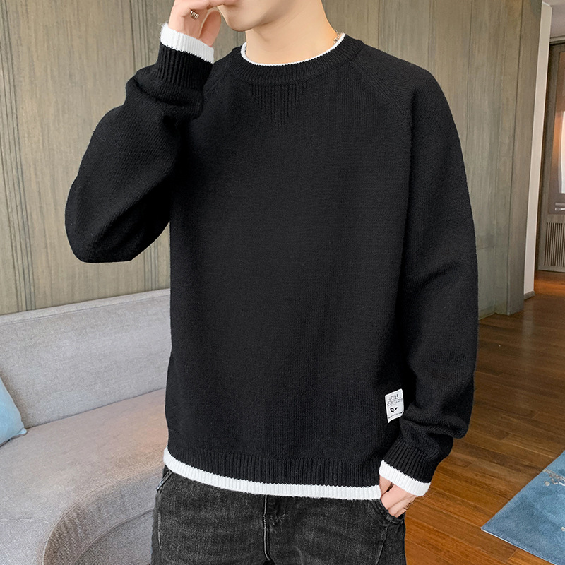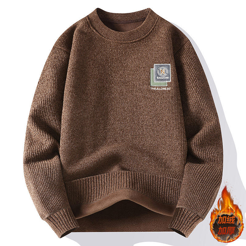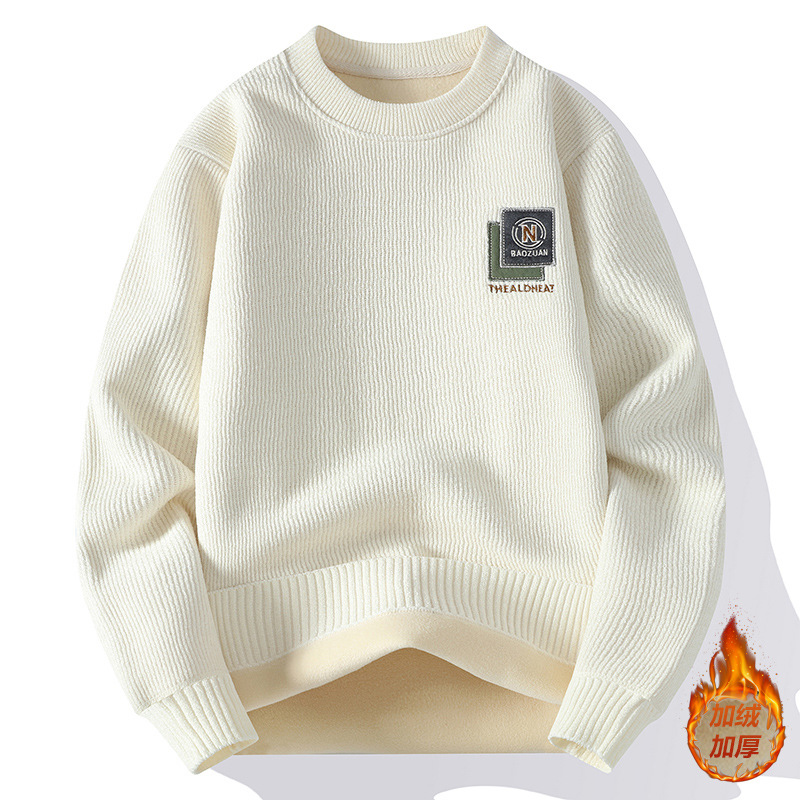 Winter sweater men's new round neck solid color knitwear spring and autumn sweater handsome Fried Dough Twists velvet thickened bottoming shirt