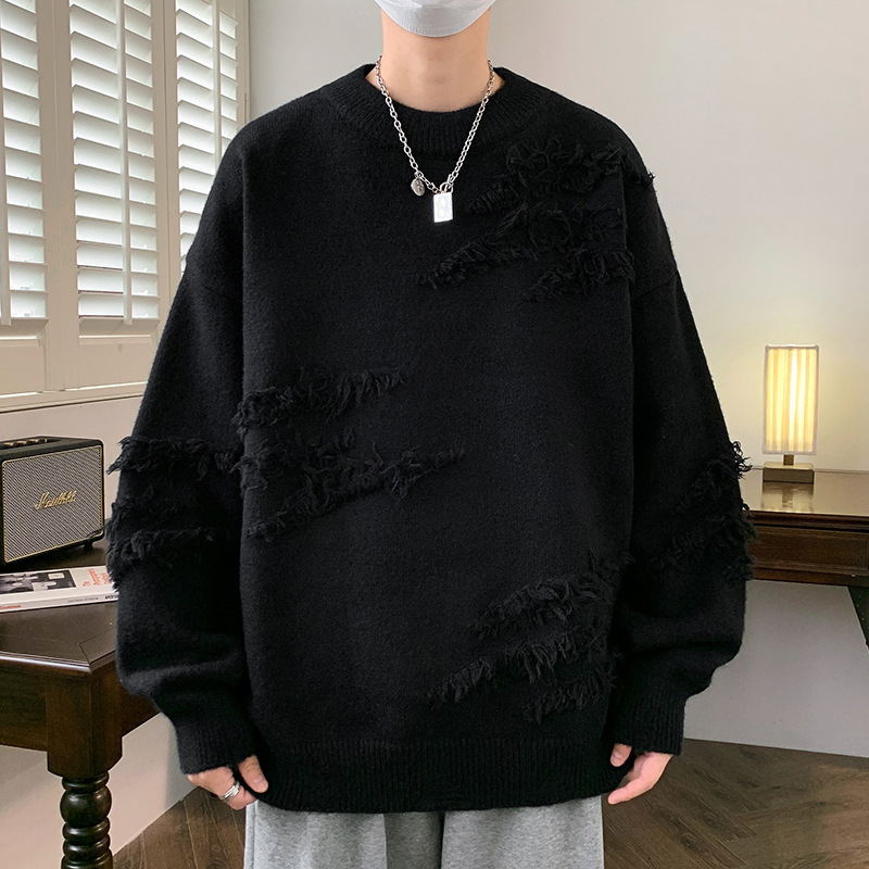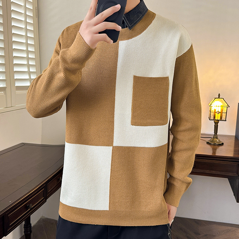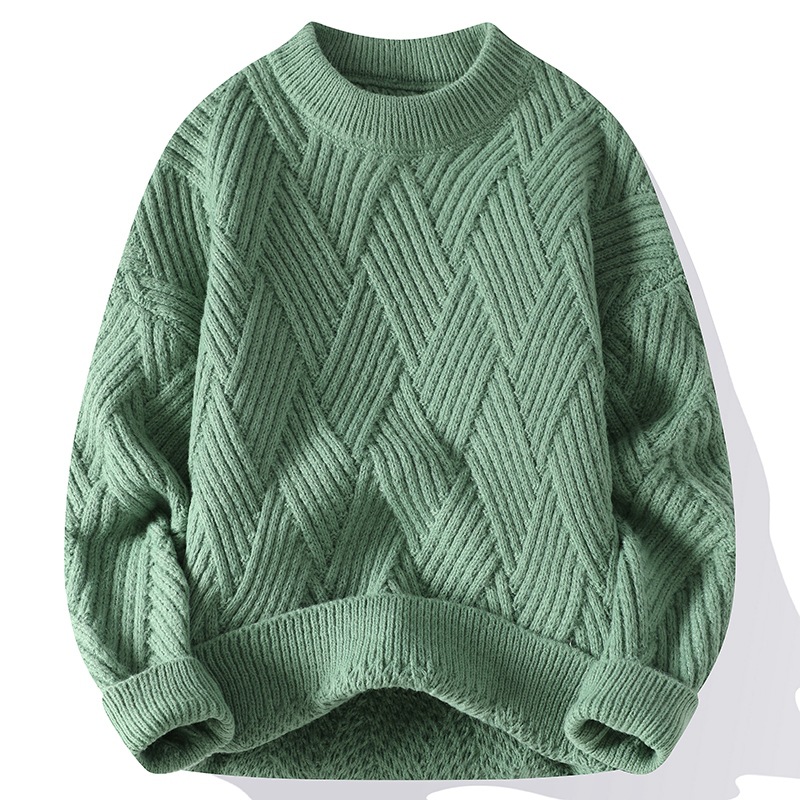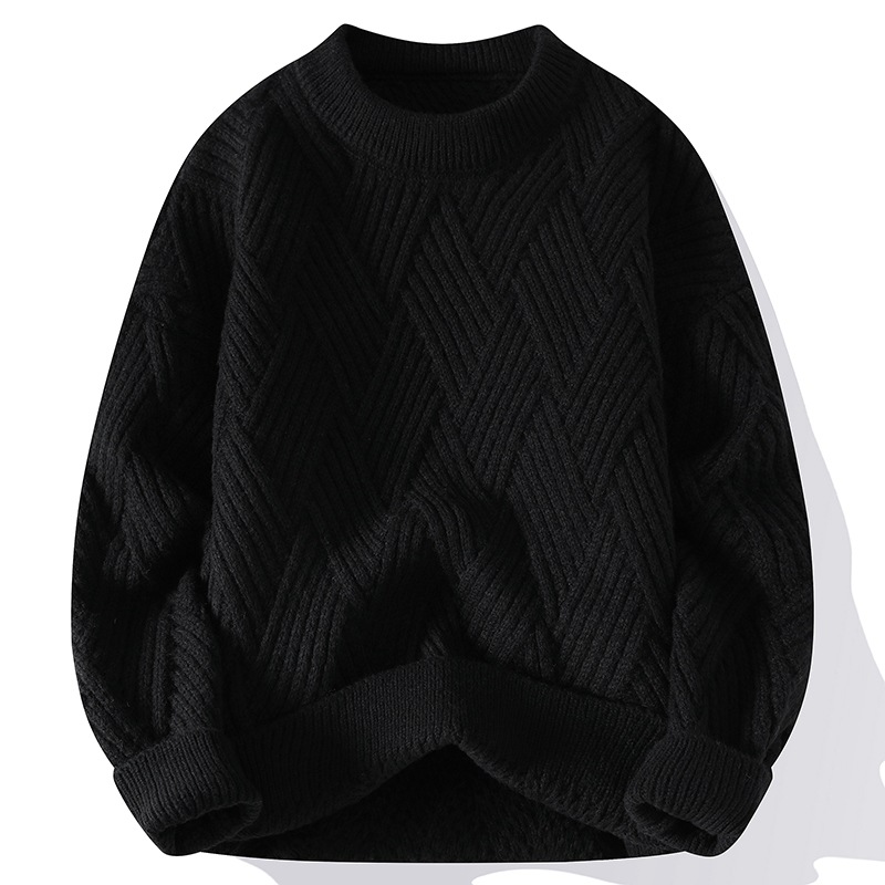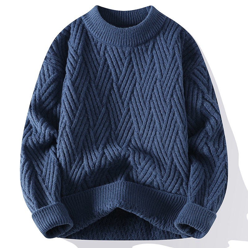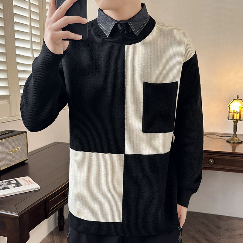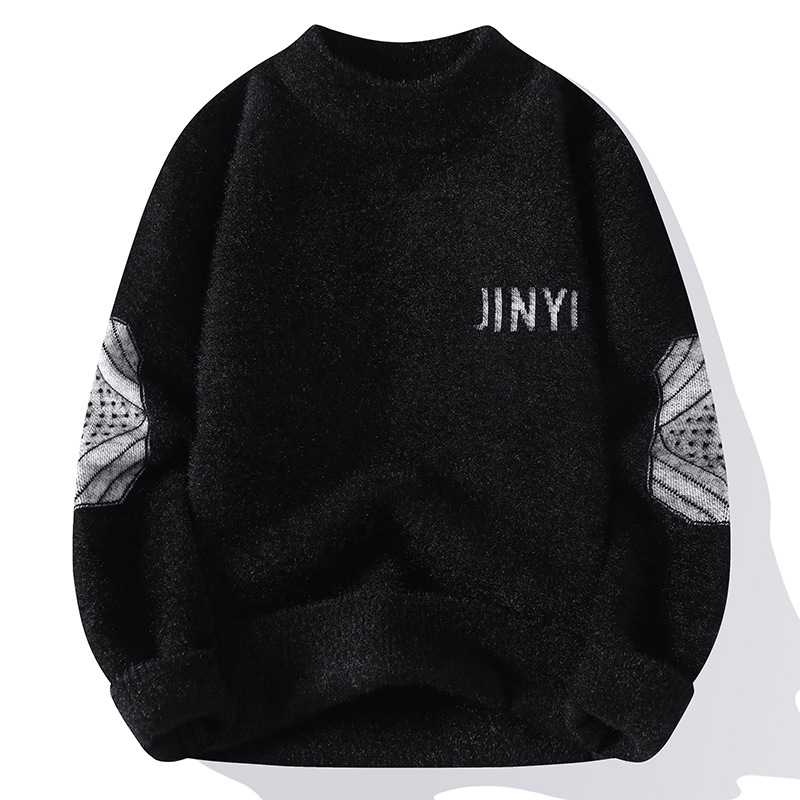 Winter sweater men's new round neck solid color knitwear spring and autumn sweater handsome Fried Dough Twists velvet thickened bottoming shirt