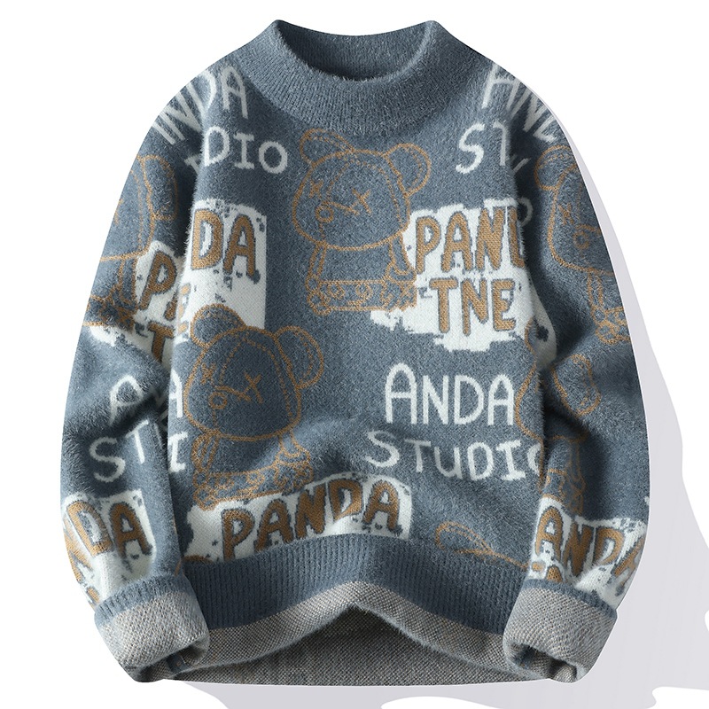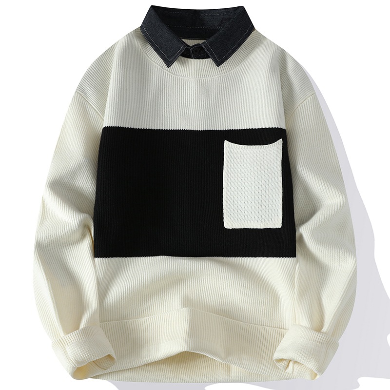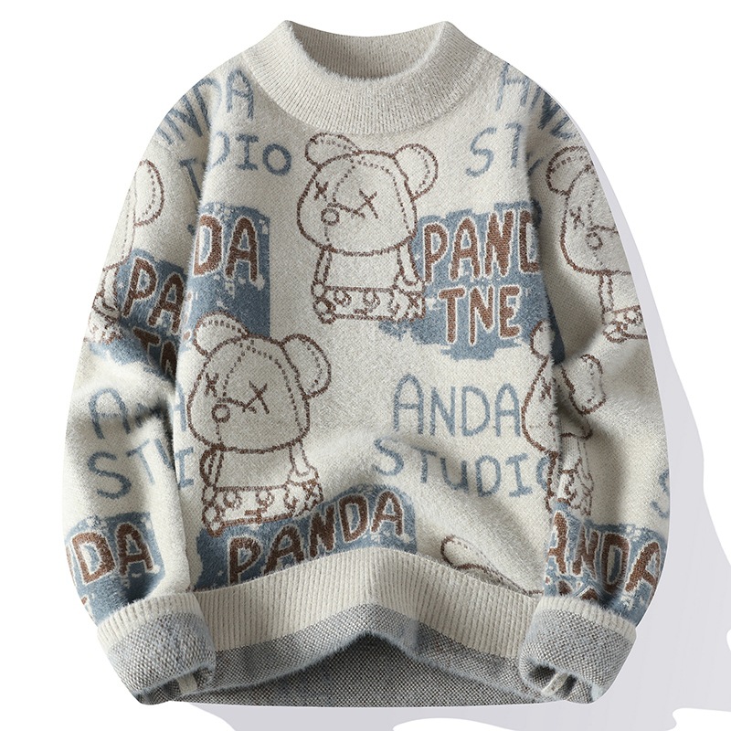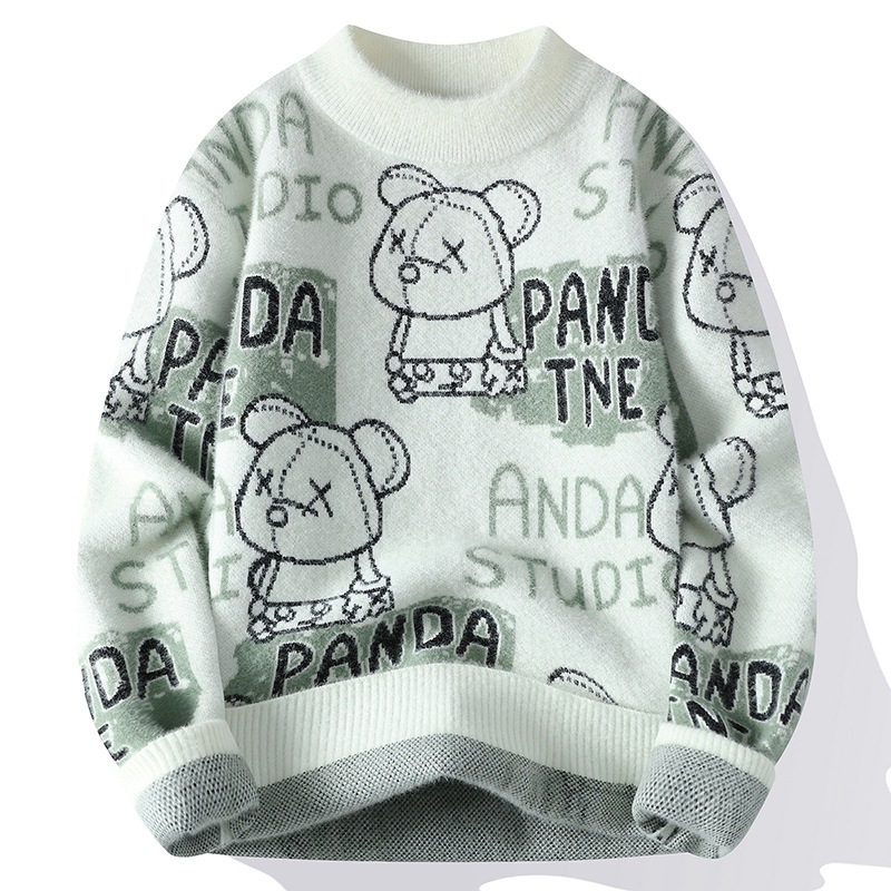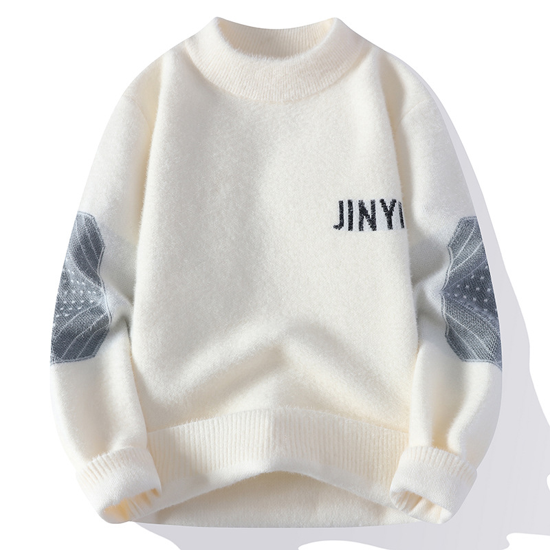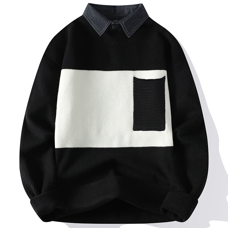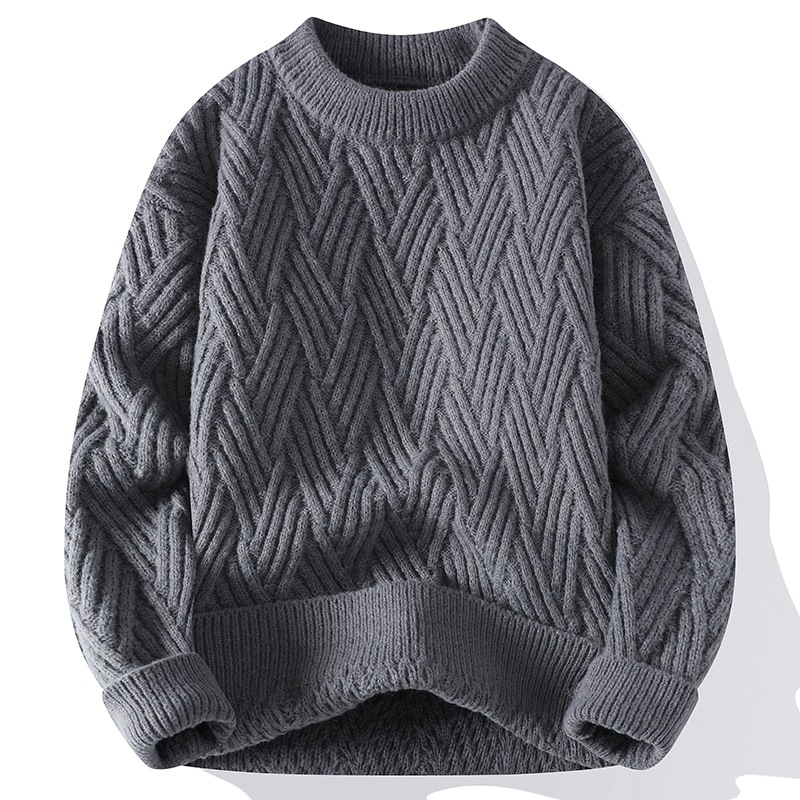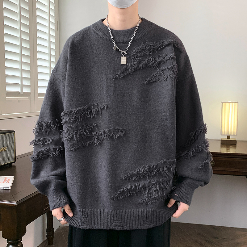Winter sweater men's new round neck solid color knitwear spring and autumn sweater handsome Fried Dough Twists velvet thickened bottoming shirt