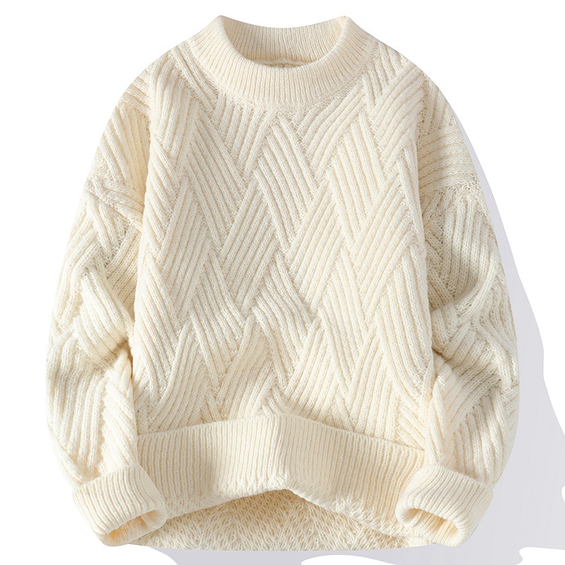 Pull en tricot de couleur unie à col rond pour homme, joli pull en velours épais, torsadé de pâte frite, printemps et automne