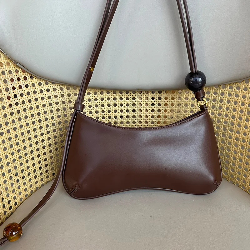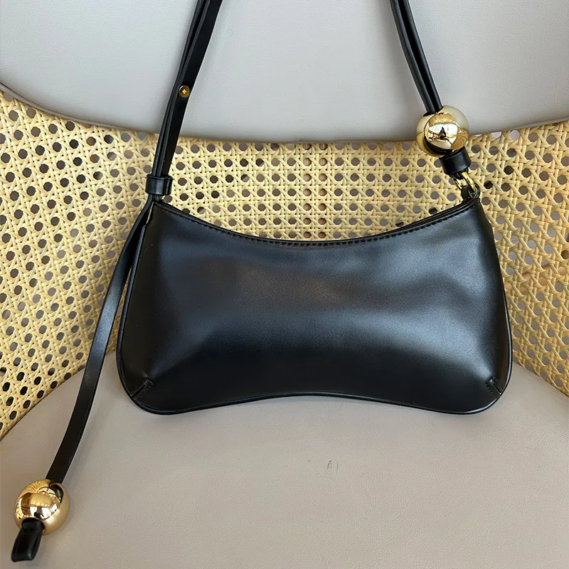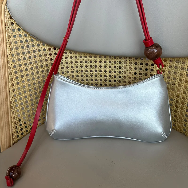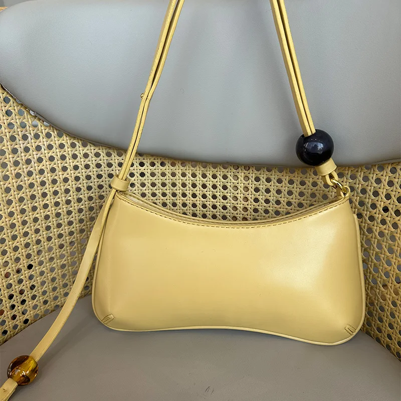 Sac à bandoulière simple en PU de couleur unie avec lettres en métal et perles pour femme, sac de fête polyvalent de petite taille