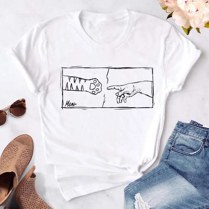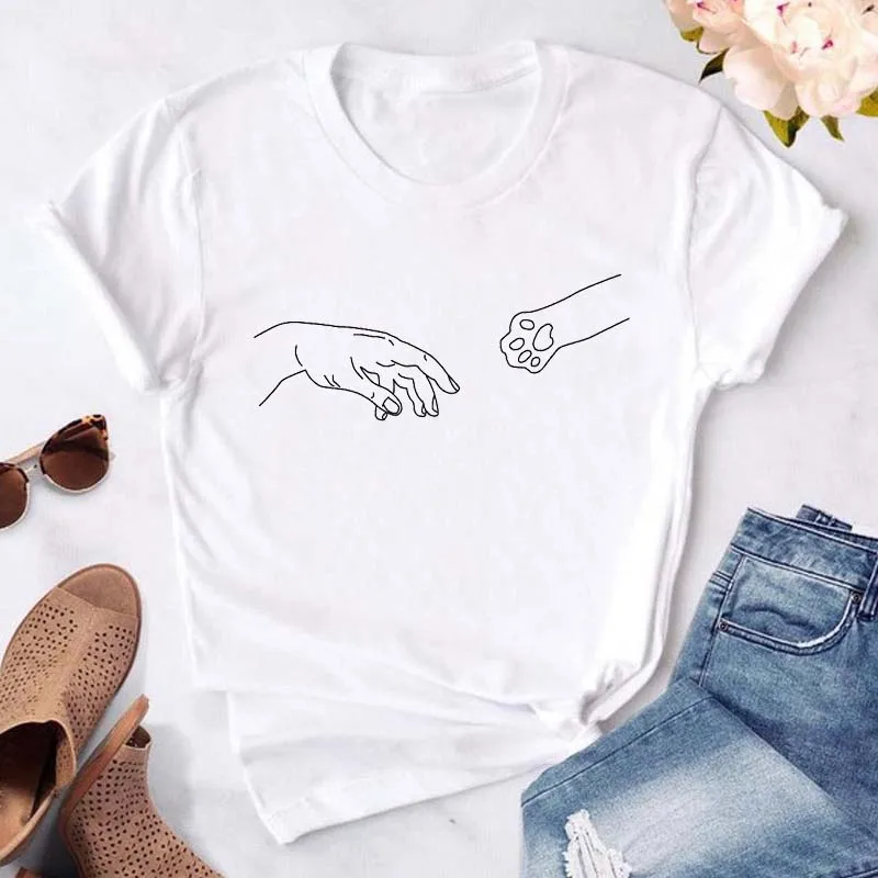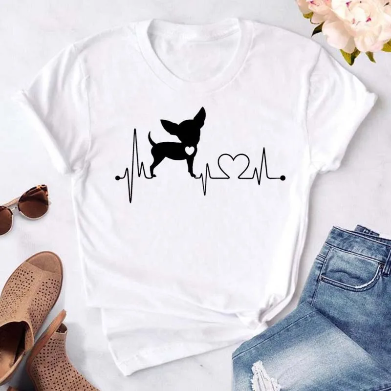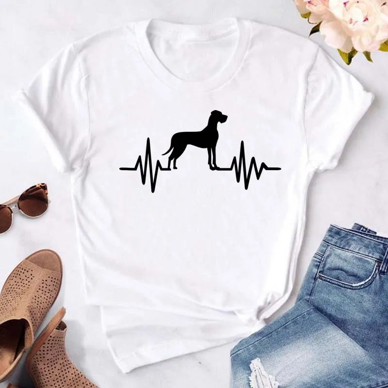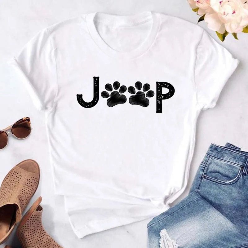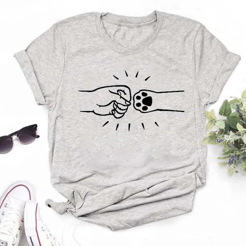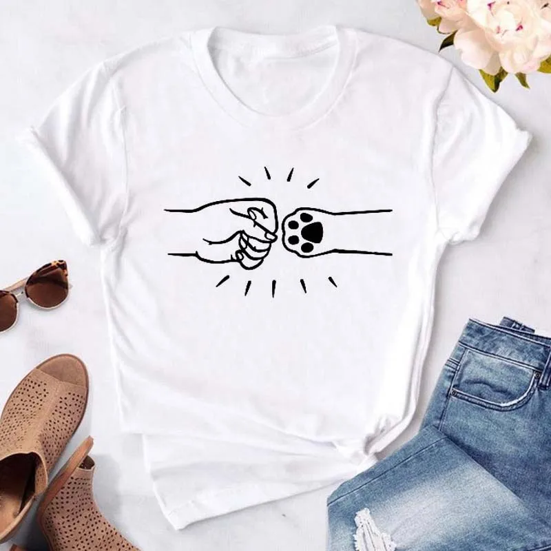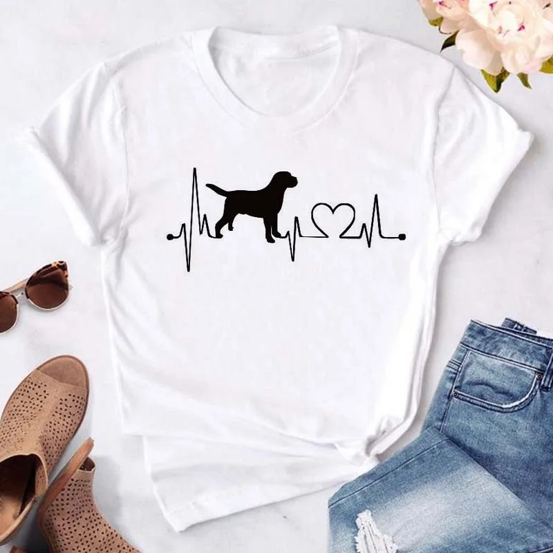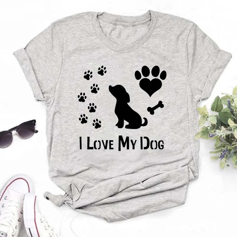 T-shirt imprimé pattes de chien et cœur pour femme, vêtement d'été à manches courtes, noir, 993